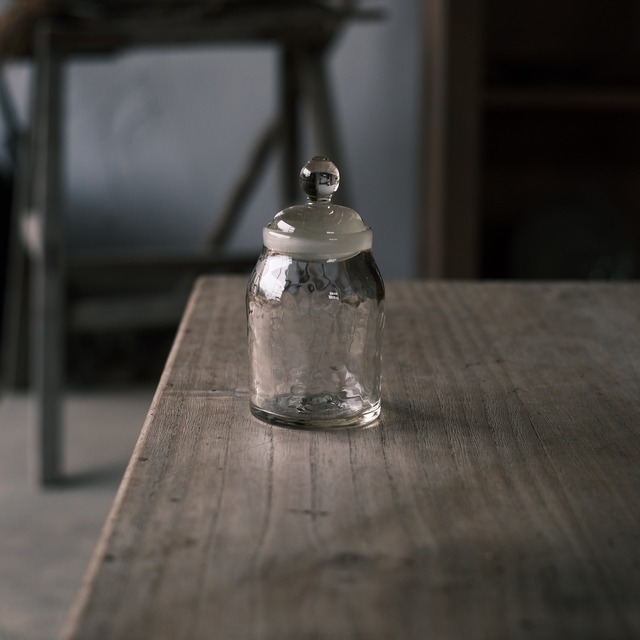 【備考欄へメッセージをご記入ください】 無言でのお買い物はお断りしています。 作り手・伝え手・使い手の間にいつも良い循環が生まれることを願い、ONLINEの場を設けています。ご賛同くださる方のみお買い物ください。初めてご利用の方はInstagramの固定投稿もご一読ください。 ■今回のトークテーマは「冬の楽しみ」です■ 購入画面の備考欄に、ぜひエピソードを書き綴ってください。色んなお話ができるのを楽しみにしています。勿論、テーマ以外にお話したいことがあれば自由に書いてもらってOKです(店主土屋)。 ---------------------------------------- 可愛いミニサイズのポット、薄飴色は初めての入荷です。 ちょっと細長な形で、キッチンの小さな隙間などに置いてもストレスフリー。そして可愛い! 胡麻やスパイス、粉末調味料など、収納が一気に楽しくなるガラスのポットです。 ---------------------------------------- 口径:4cm 底径:5.5cm 高さ:11cm ※個体差を承知の上、ご購入ください。