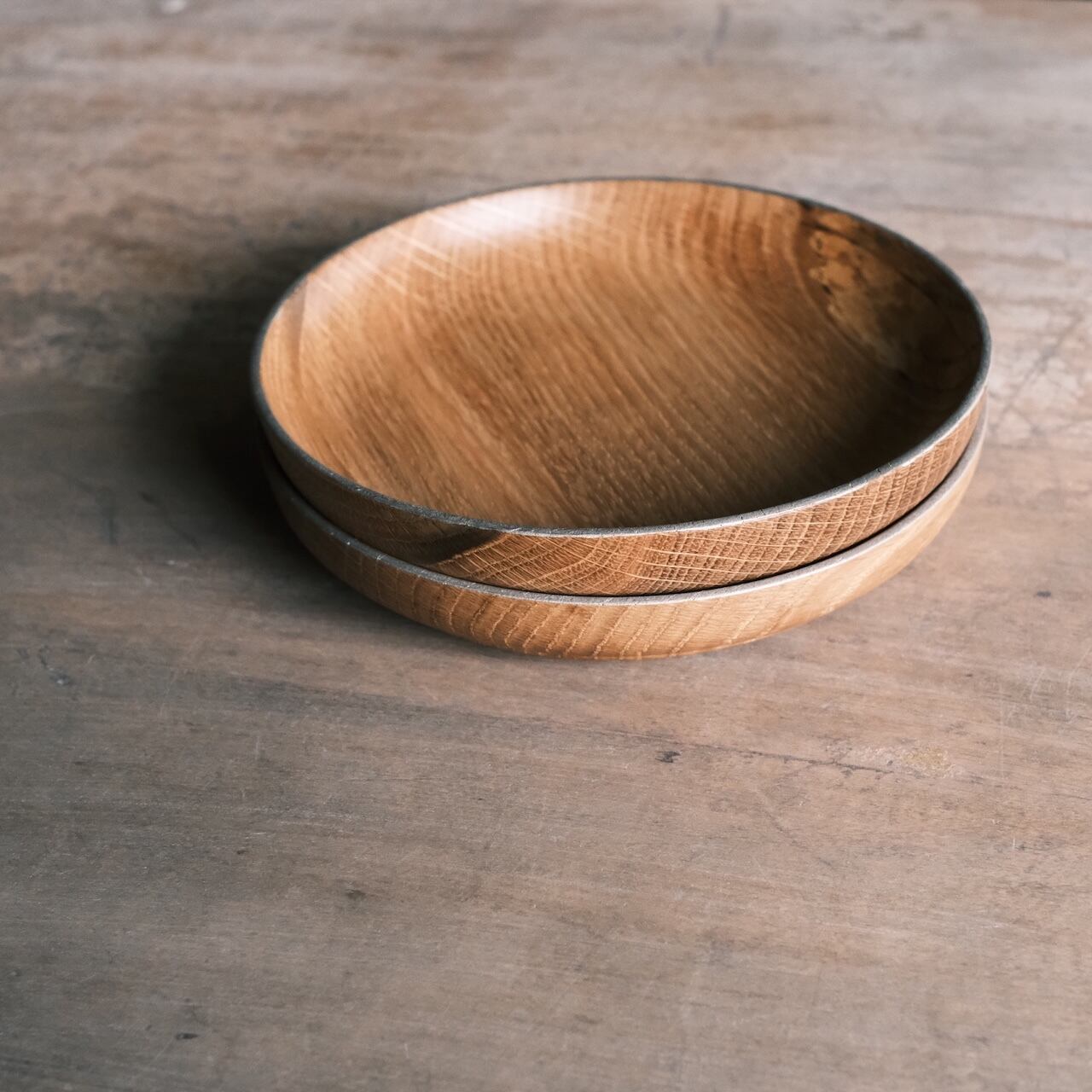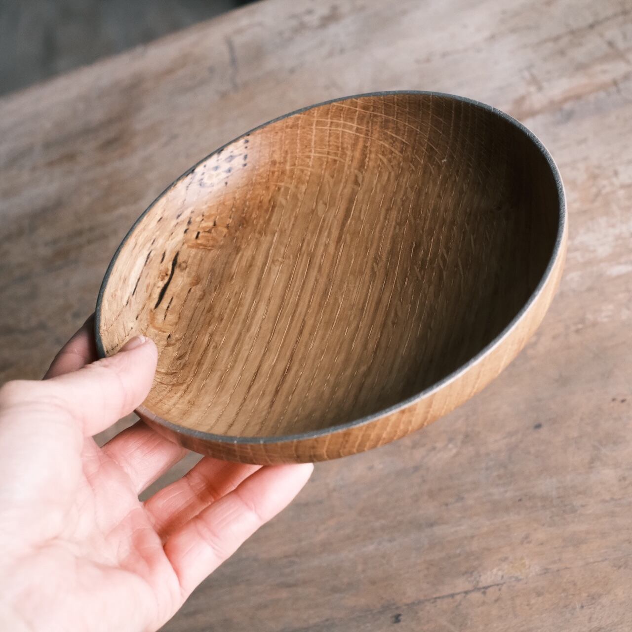 ナラの魅力は、男前な木目!同じ形のカエデはナチュラル感が強いですが、こちらは乾いた強さのようなものを感じます。土感ある陶器とも相性が良いほど。