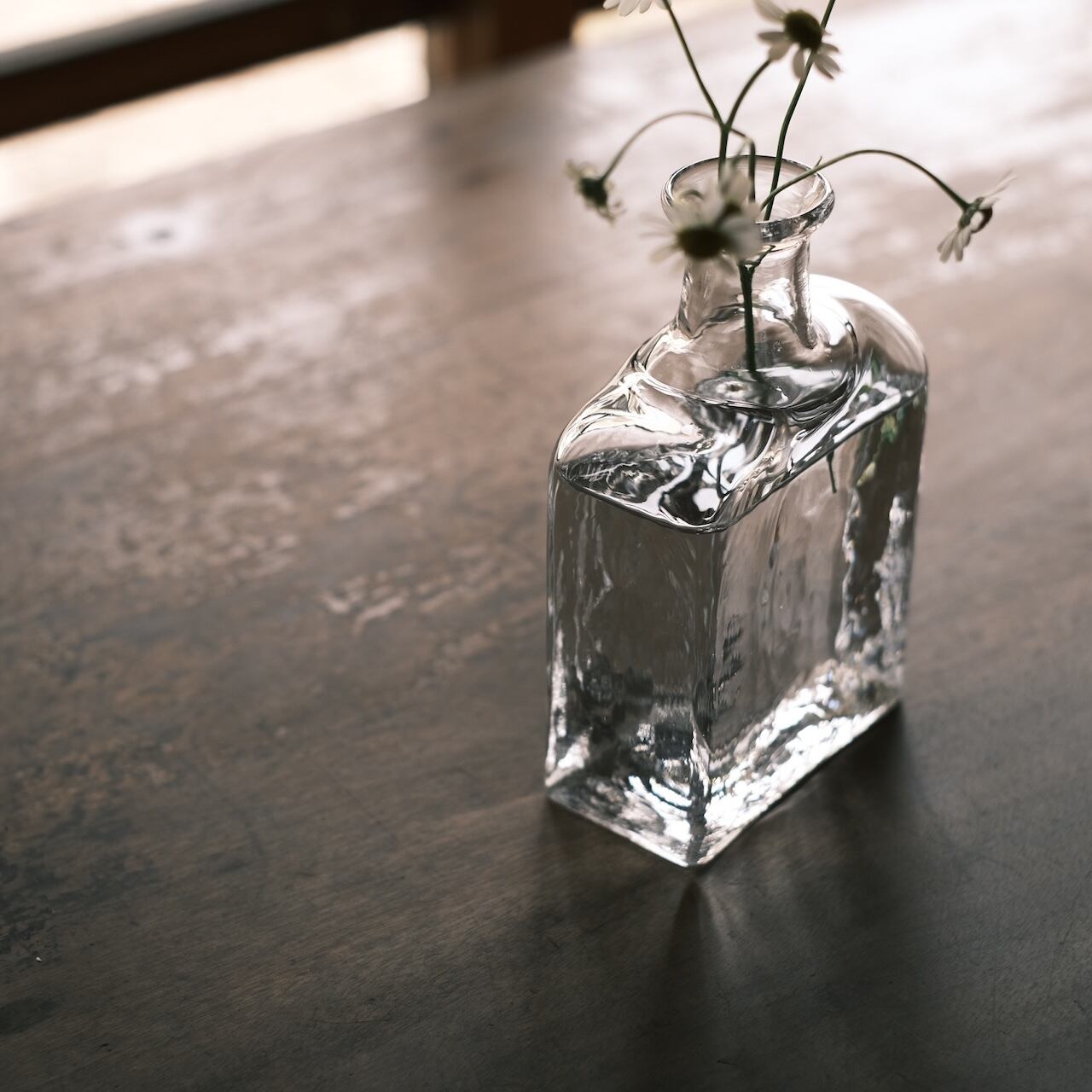 写真のマトリカリアのように、線の細い花や草がとてもよく合います。水が入ったときの揺らぎも美しい。