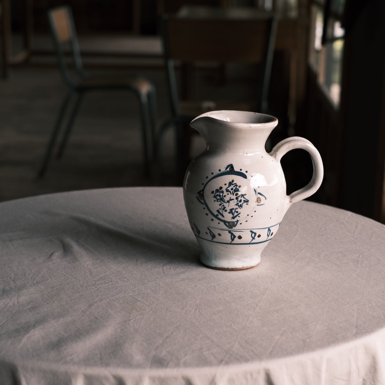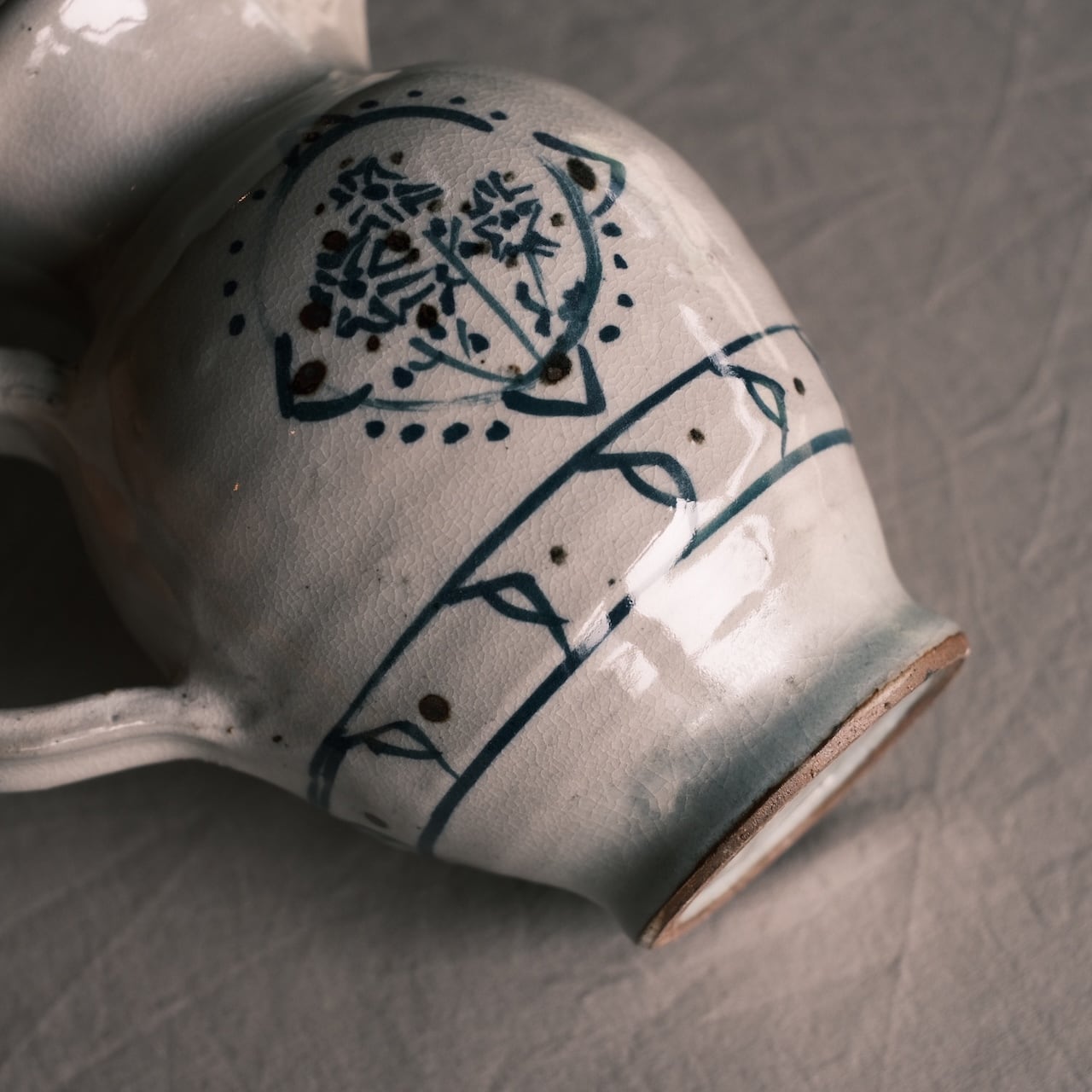 形も絵付けもすべてが印象的な、中サイズのピッチャー。