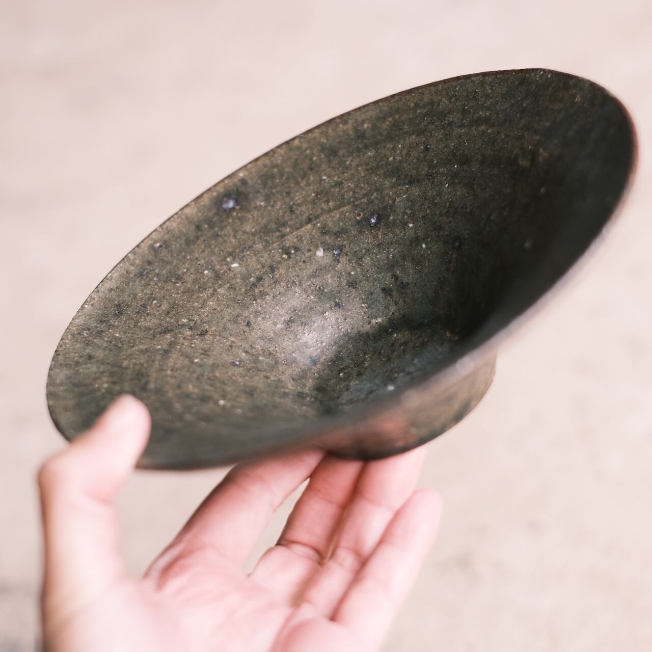 緑釉:深い緑色とグレーが混じったようなクラシカルな趣き。ざらざらと土感がありながら、渋さよりも上品さの漂うところが魅力です。明るい色の食材と合わせたい。