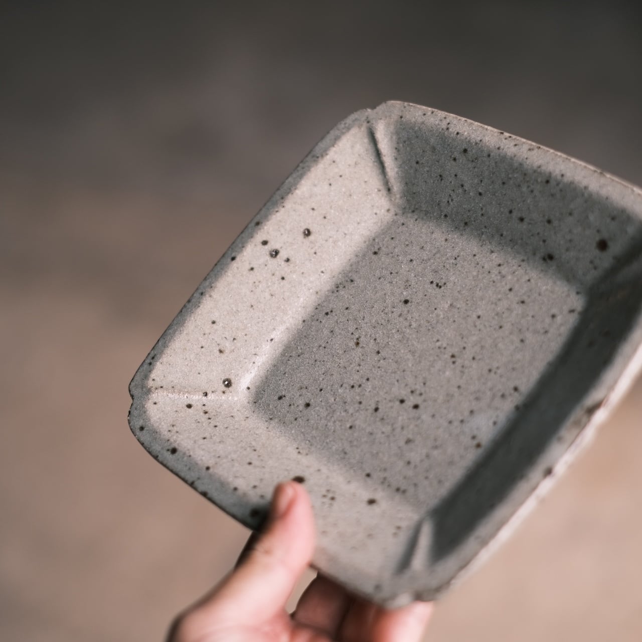 隅入りのデザインが目を惹くスクエア型のお皿。