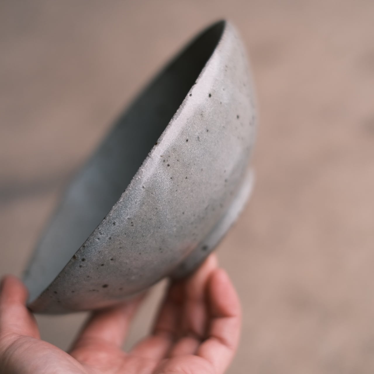 土灰釉:ツヤ感のあるグレー。若干の青みがあり、独特の透明感が特徴です。和にも洋にも属さず、カジュアルでもシックでもない、まさに使い手次第のうつわ。