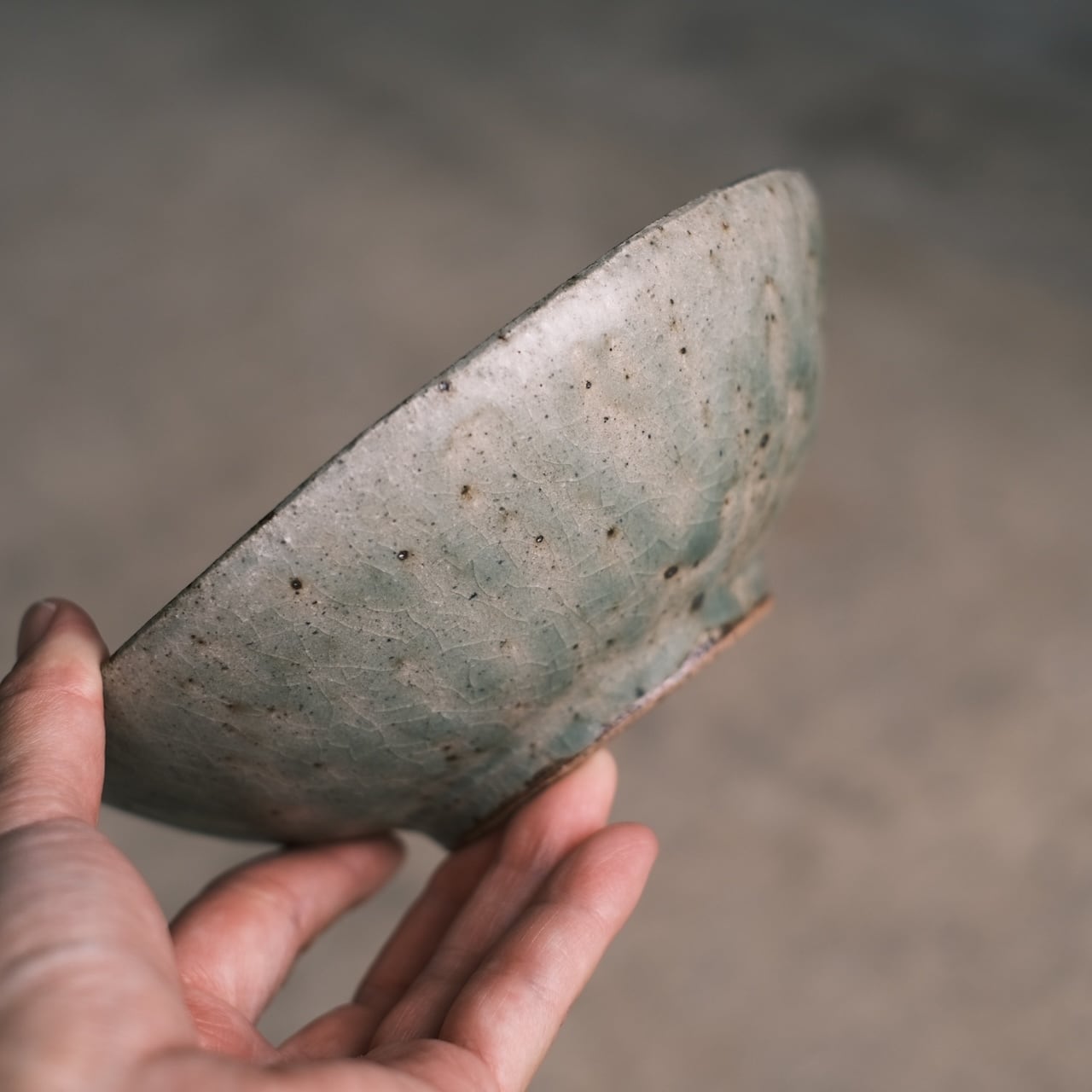 翡翠釉:透き通る青緑色が土に乗り、淡い渋さを醸しています。質感はざらっとしており古陶のような静かな空気感も。ガラス器との相性も抜群です。