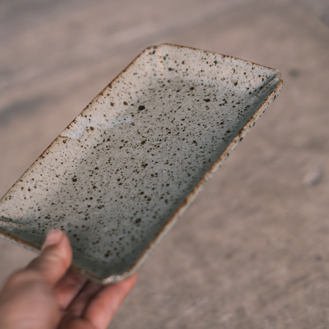 シンプルな長角皿も、隅入りのデザインですっきりとした印象に。
