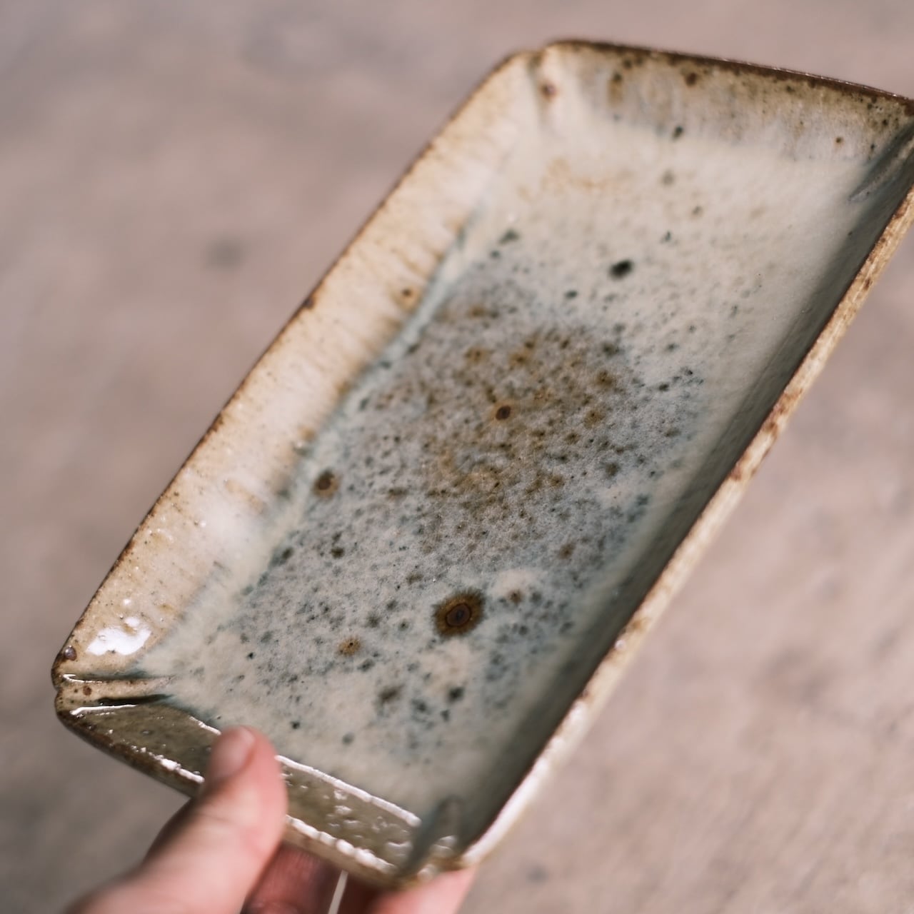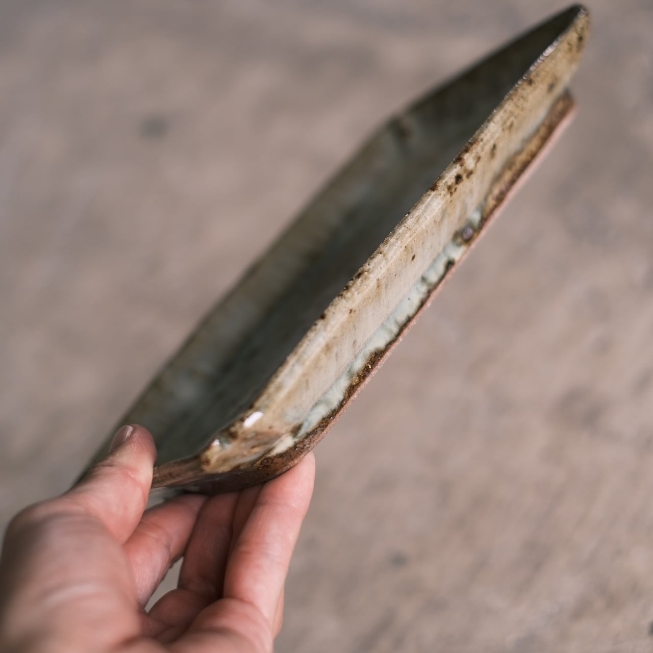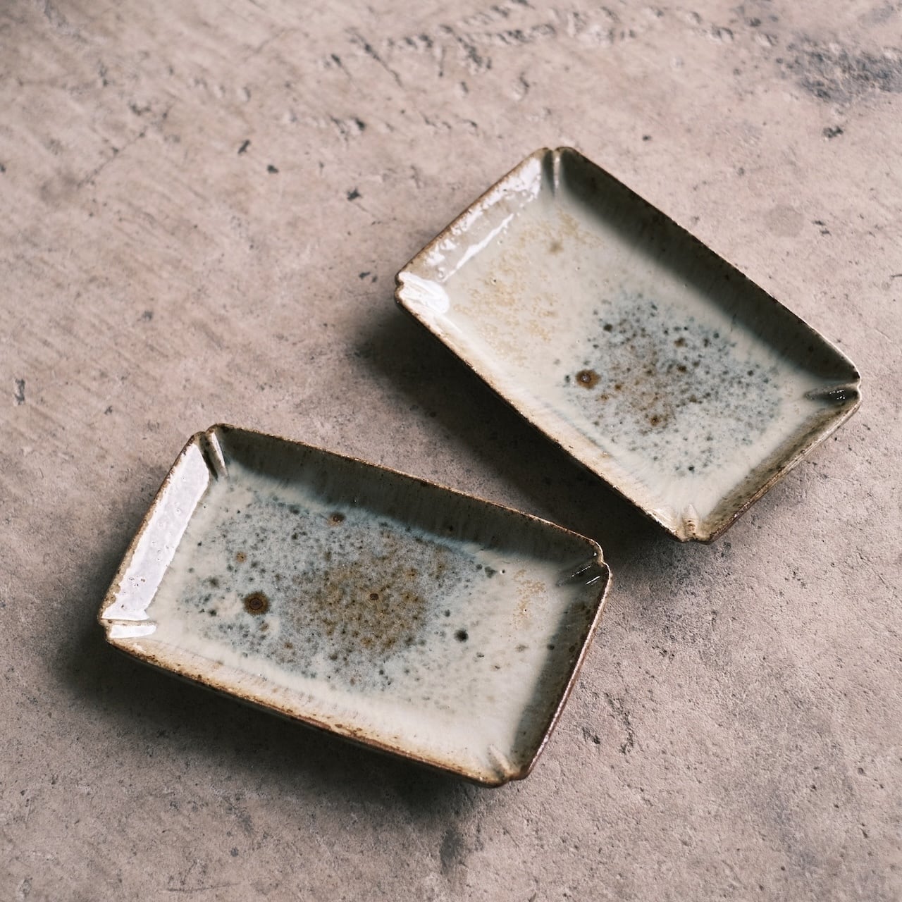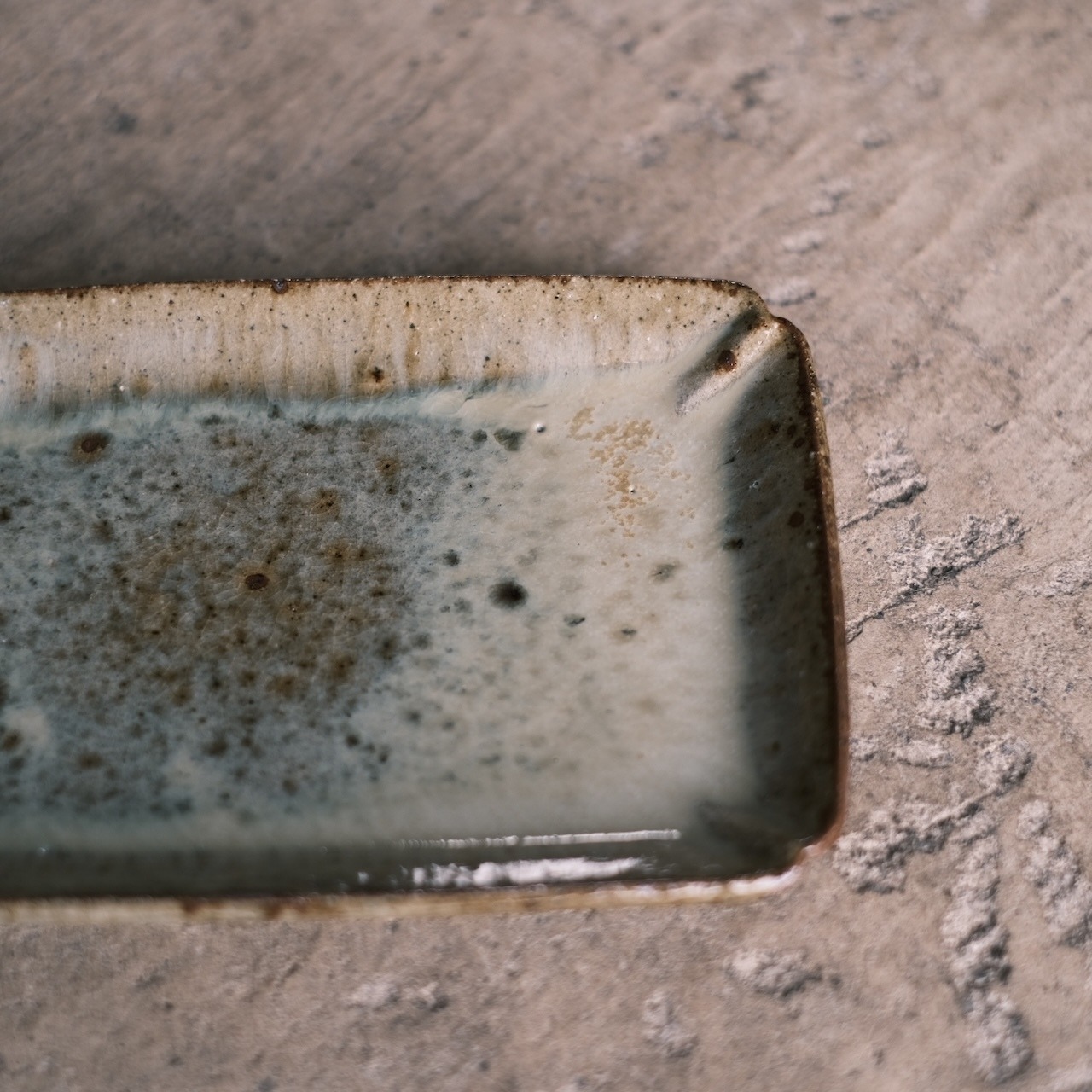 シンプルな長角皿も、隅入りのデザインですっきりとした印象に。