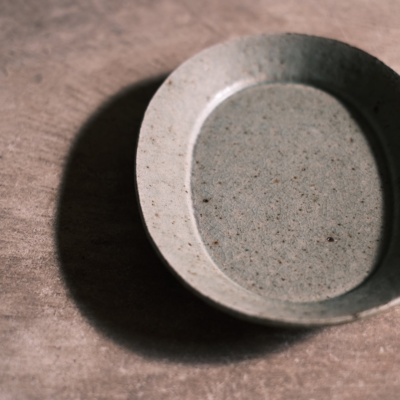 翡翠釉:透き通る青緑色が土に乗り、淡い渋さを醸しています。質感はざらっとしており古陶のような静かな空気感も。ガラス器との相性も抜群です。