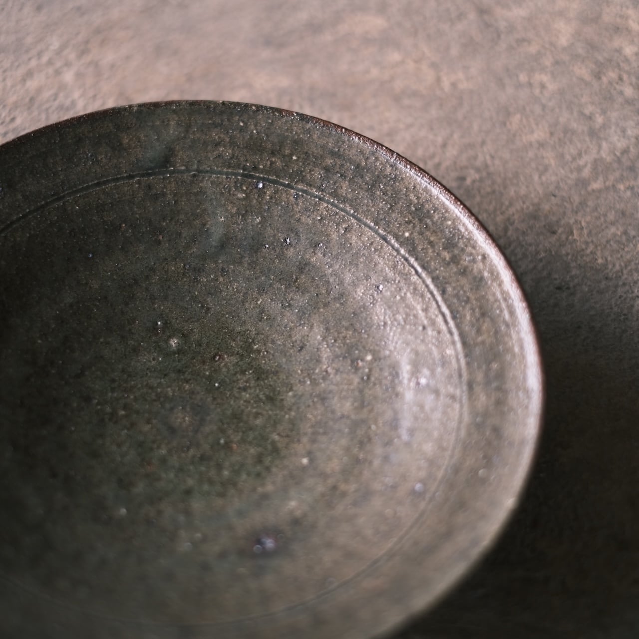 緑釉:深い緑色とグレーが混じったようなクラシカルな趣き。ざらざらと土感がありながら、渋さよりも上品さの漂うところが魅力です。明るい色の食材と合わせたい。