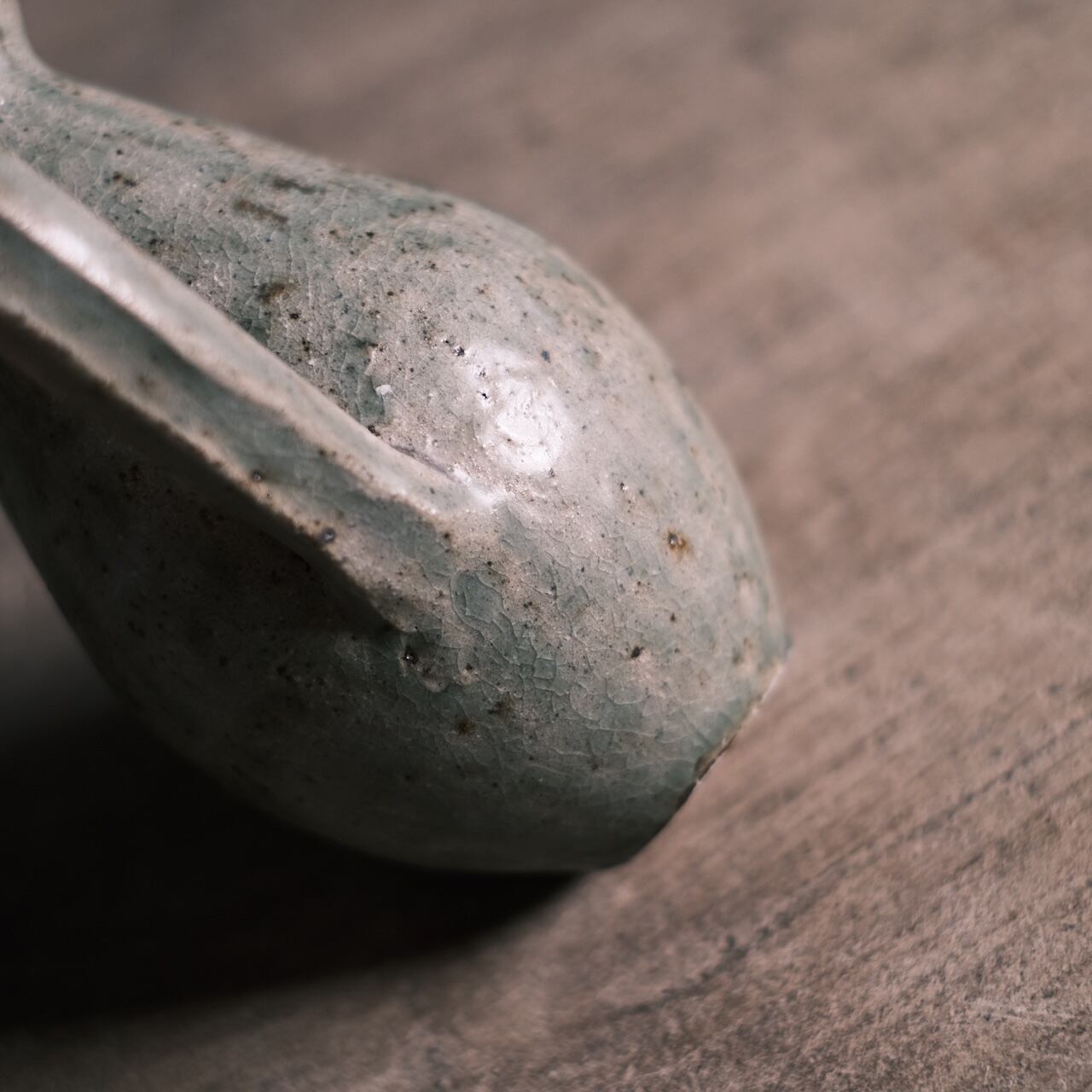 翡翠釉:透き通る青緑色が土に乗り、淡い渋さを醸しています。質感はざらっとしており古陶のような静かな空気感も。ガラス器との相性も抜群です。