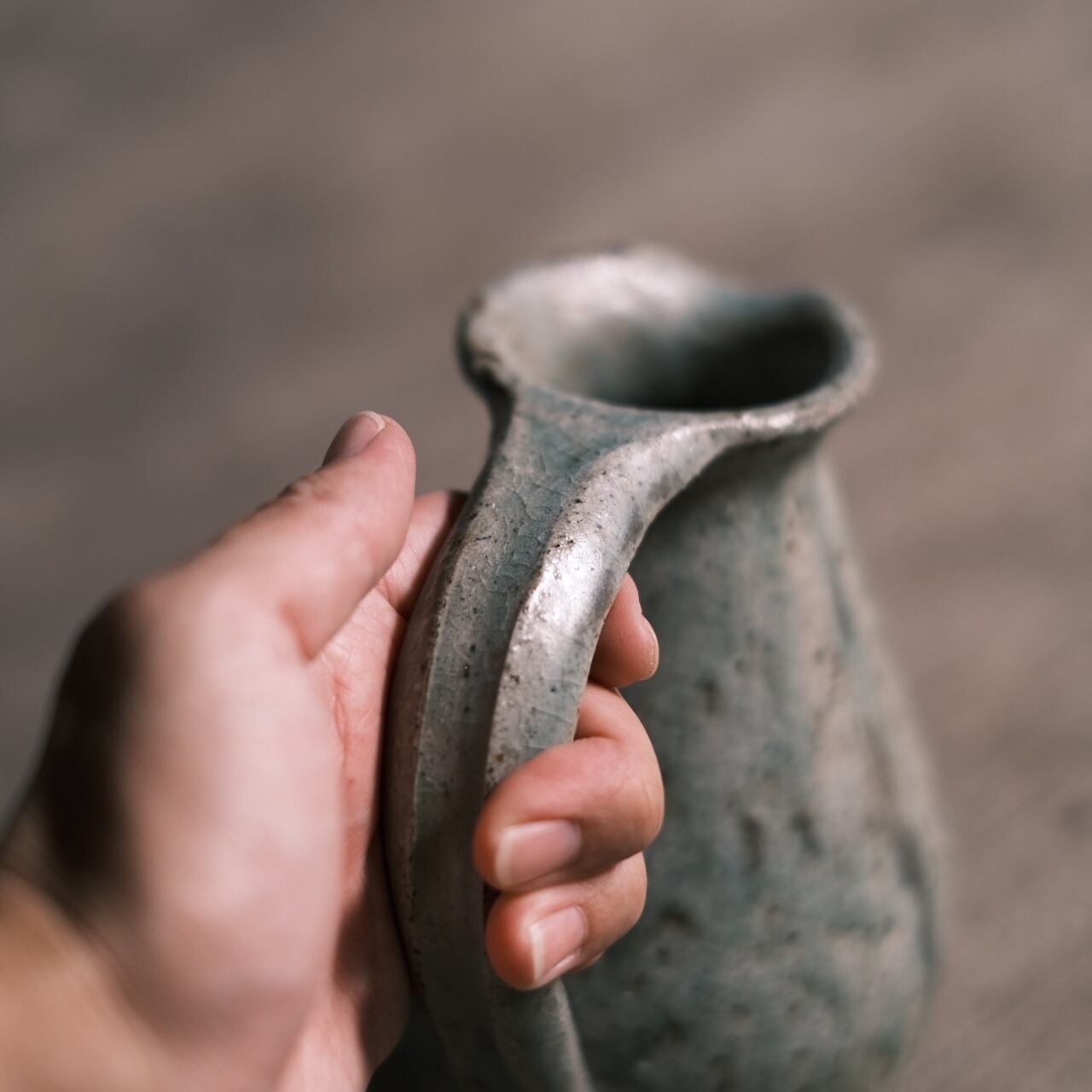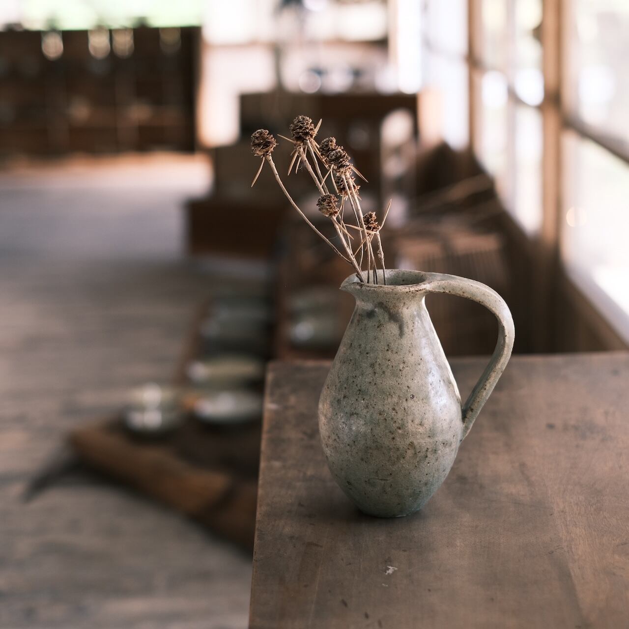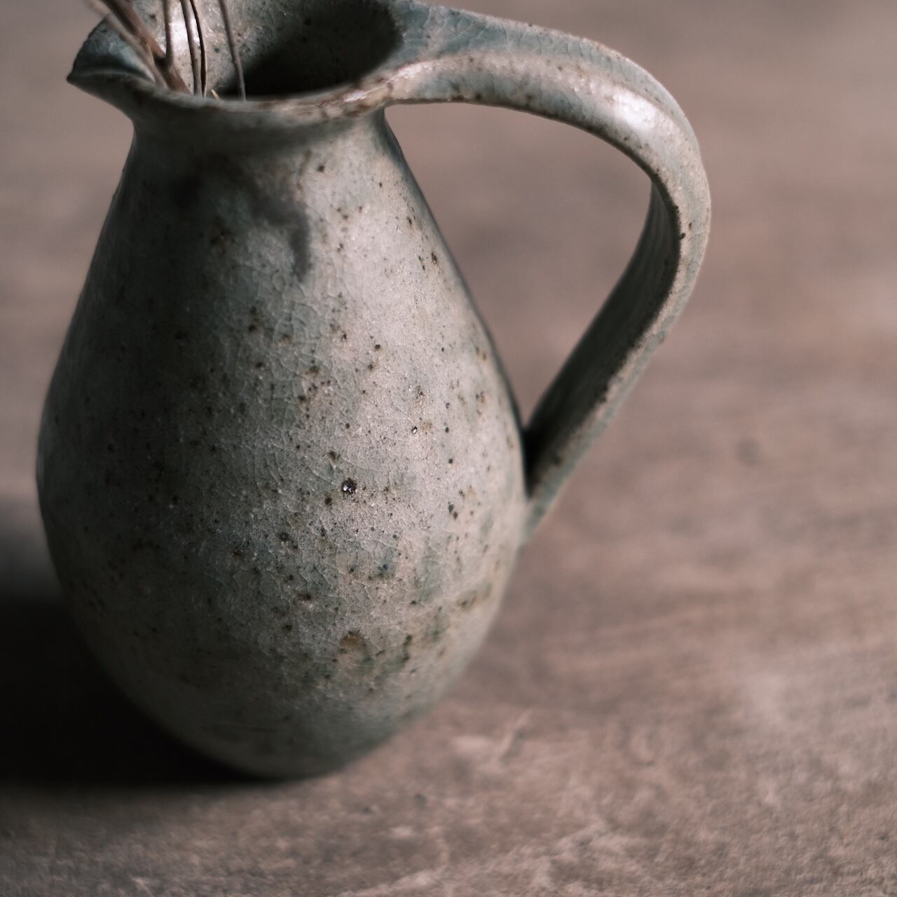 花器として使っても、水差しとして使っても。取っ手もしっかりグリップ感があり、強さの中に美しさを感じるようなピッチャーです。