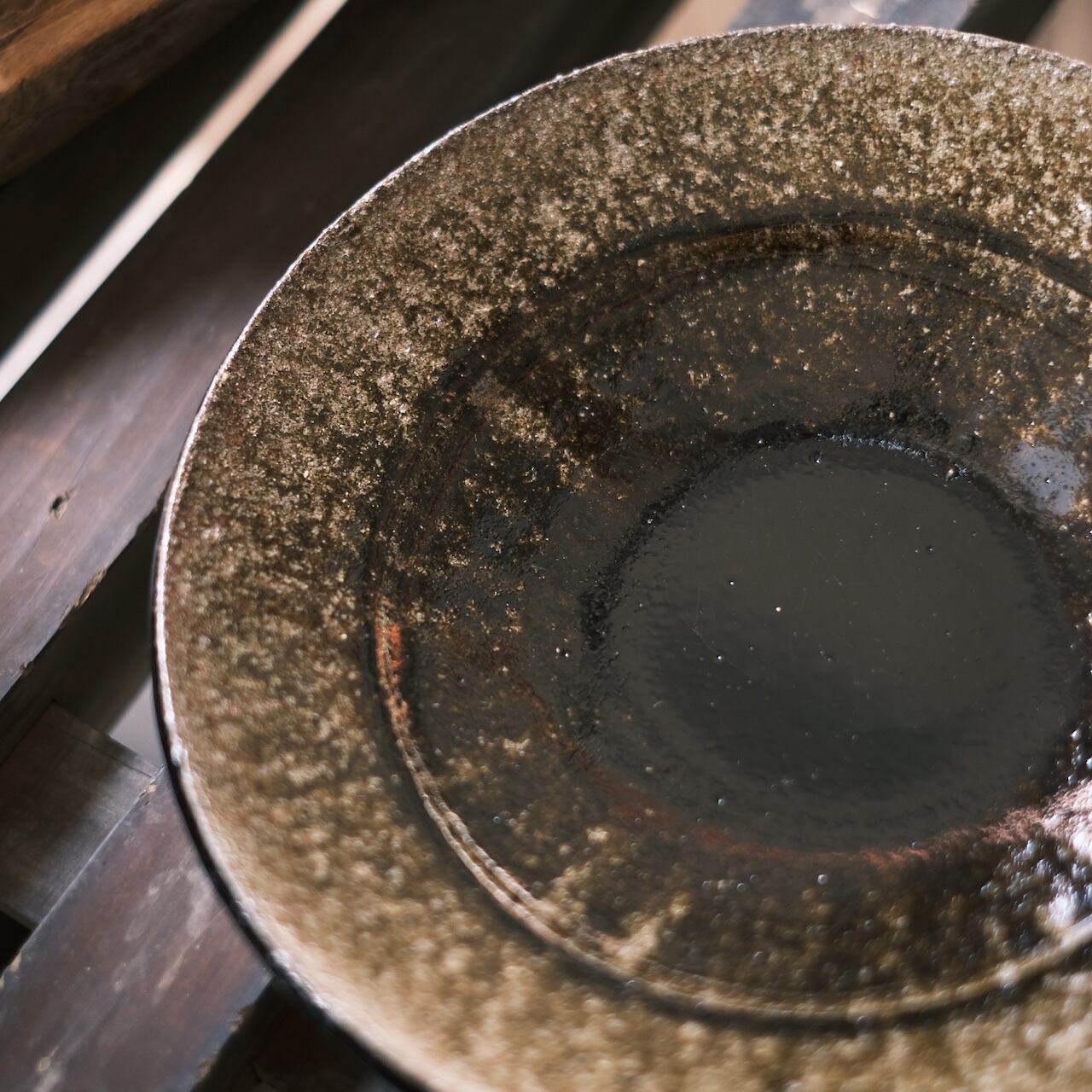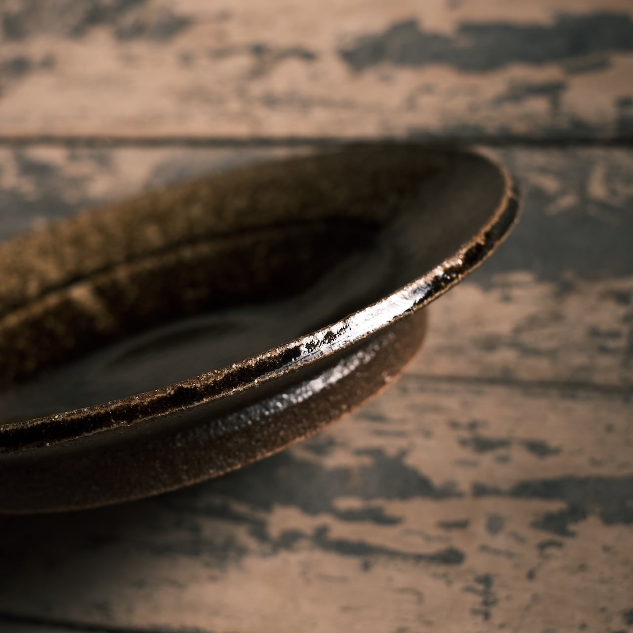 よく「土っぽいうつわ」というフレーズを聞いたりしますが、このお皿は「石っぽいうつわ」とでも言いましょうか。しっかり厚い、けれど平たくて扱いやすい。厳かに見えますが、思いの外気軽に使っていただけます。