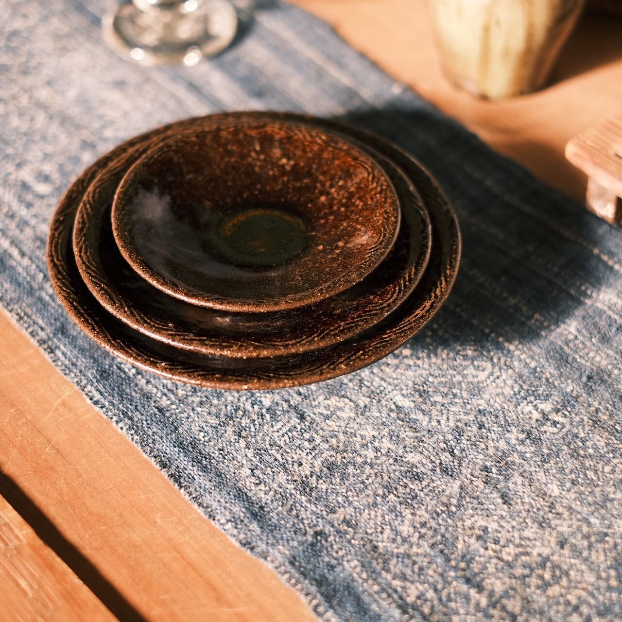 黒飴釉は土感がしっかりしており、大きいサイズほど渋さを強く感じるのですが、5寸以下であれば圧迫感もありません。気軽に使い始めるにはちょうど良い塩梅。