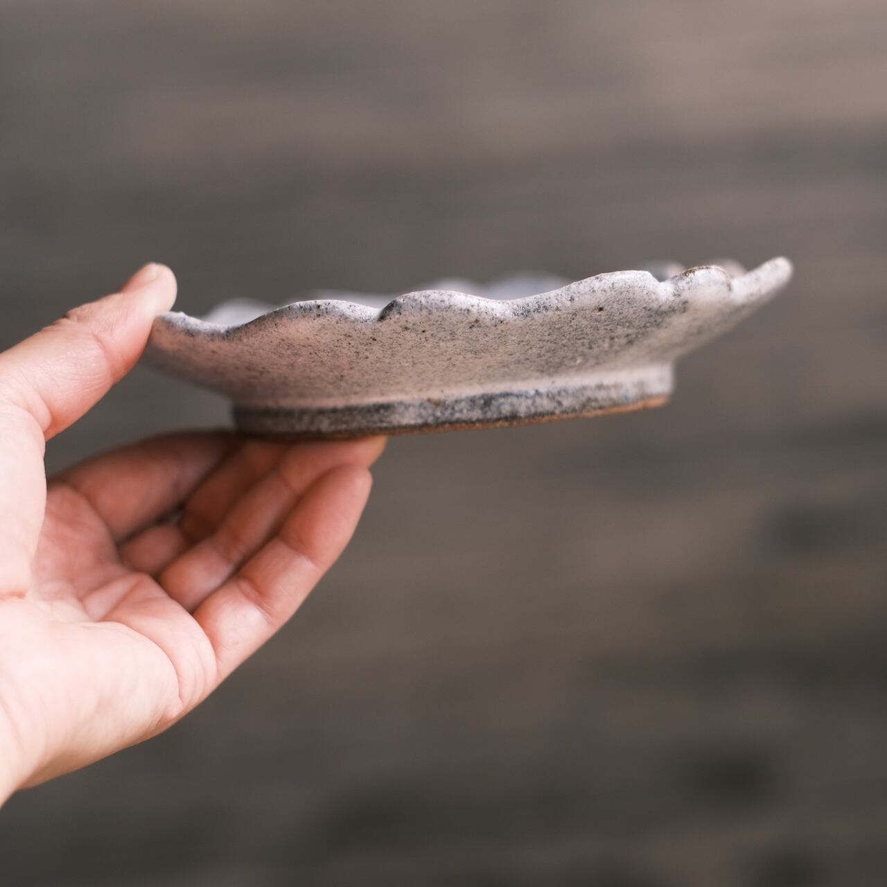 稜花の形だと少し上品な雰囲気もありますが、丸みのある縁取りがとても愛らしい。端正だけどどこかホッとする、親しみも感じるような普段づかいのお皿です。