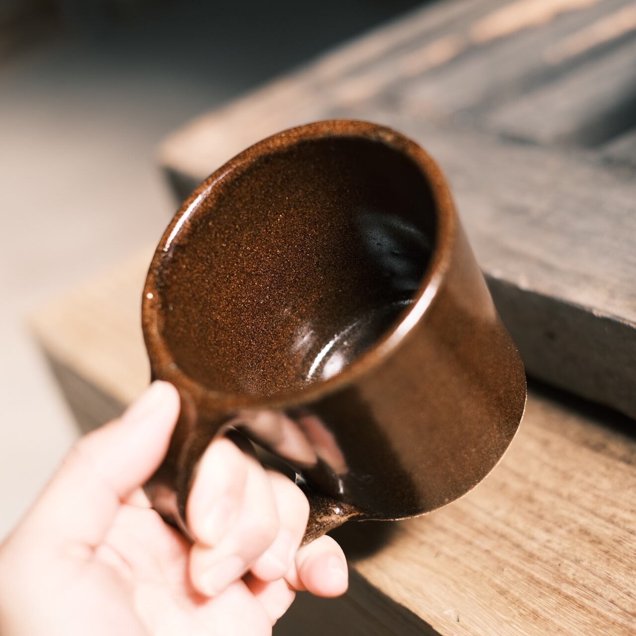 個人的な表現になりますが、黒釉はチョコラブラドール色!特に自然光に当たった時の茶色味は本当にきれいです。愛嬌があって、ホッとする色。