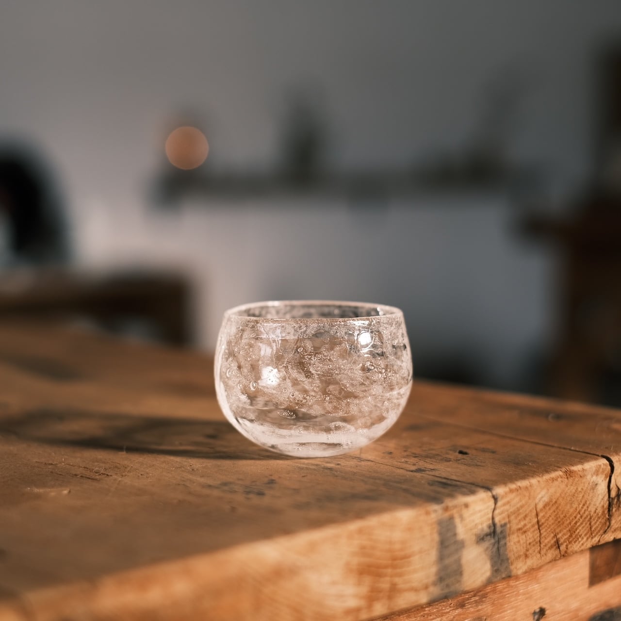 コロンと転がっていきそうな丸みが可愛いです。泡ガラスでより軽やかに。
