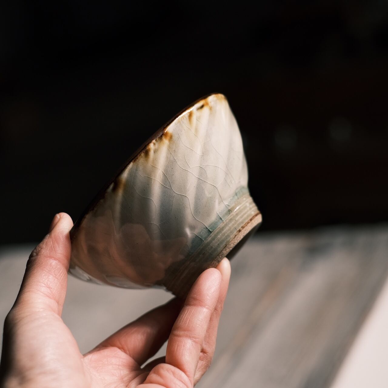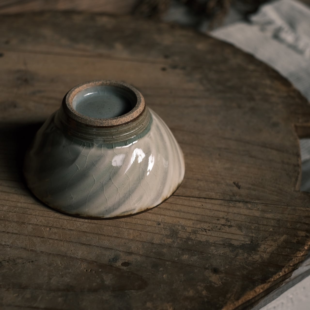 灰は、やわらかな暖色系の白色が美しい。木のお椀との相性もグッド。
