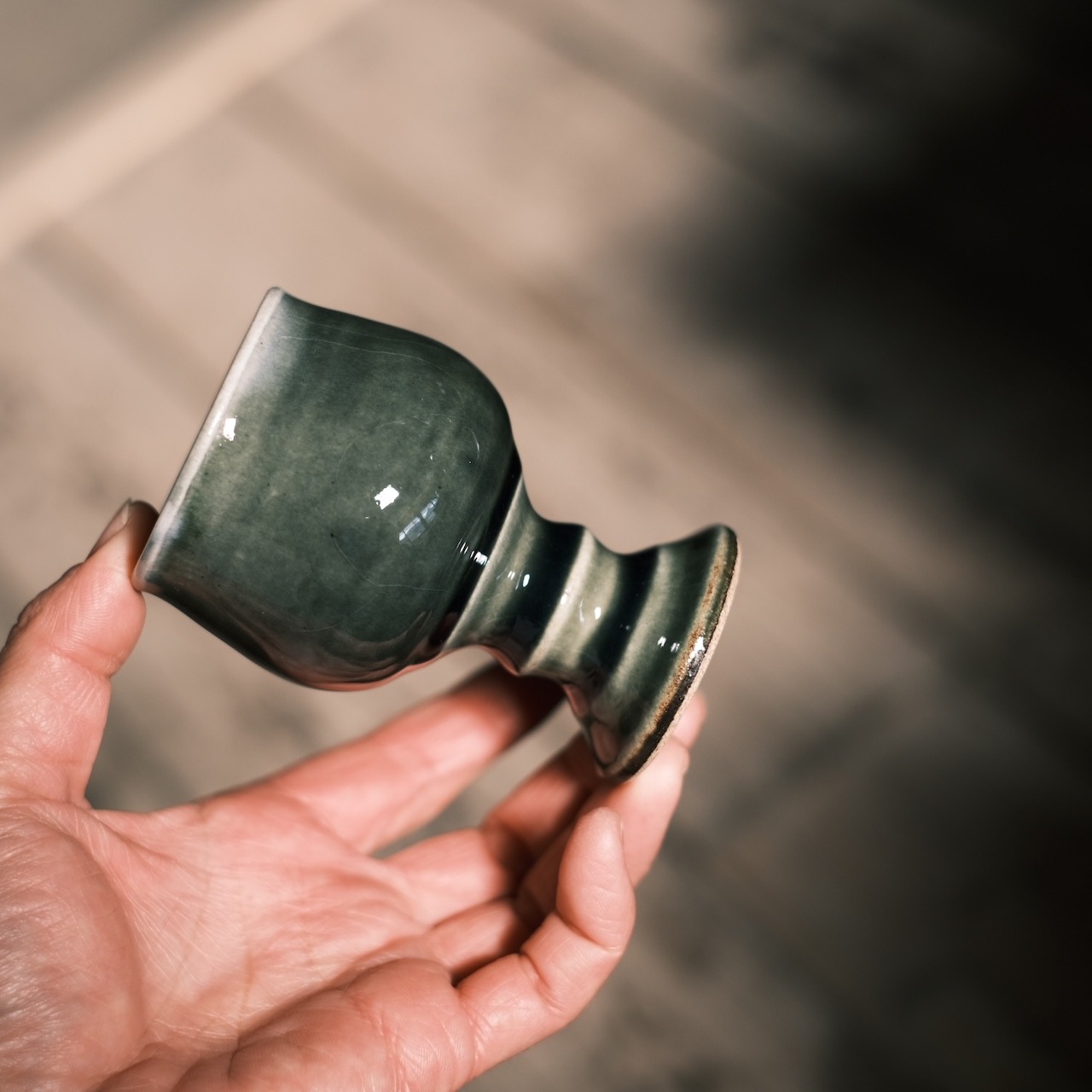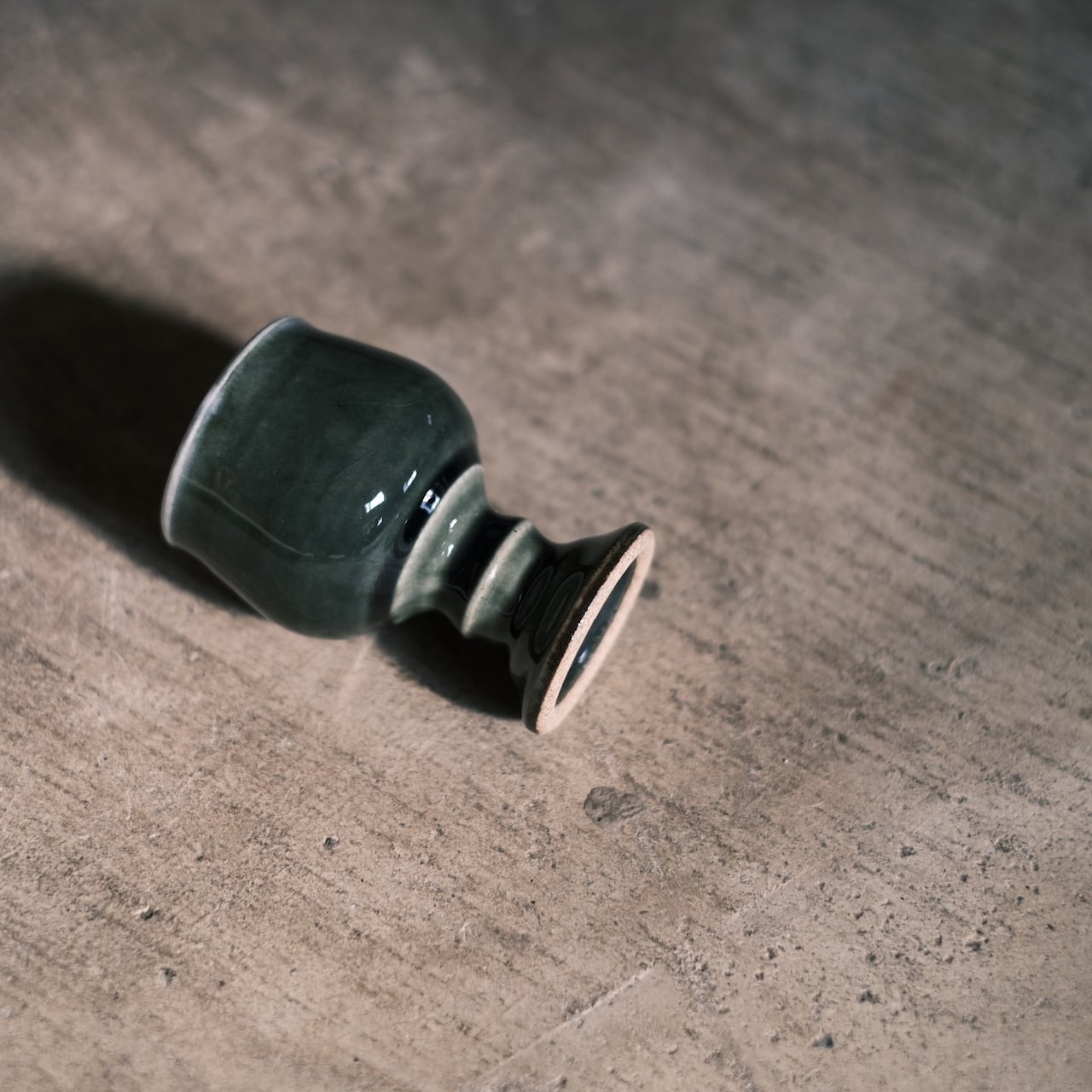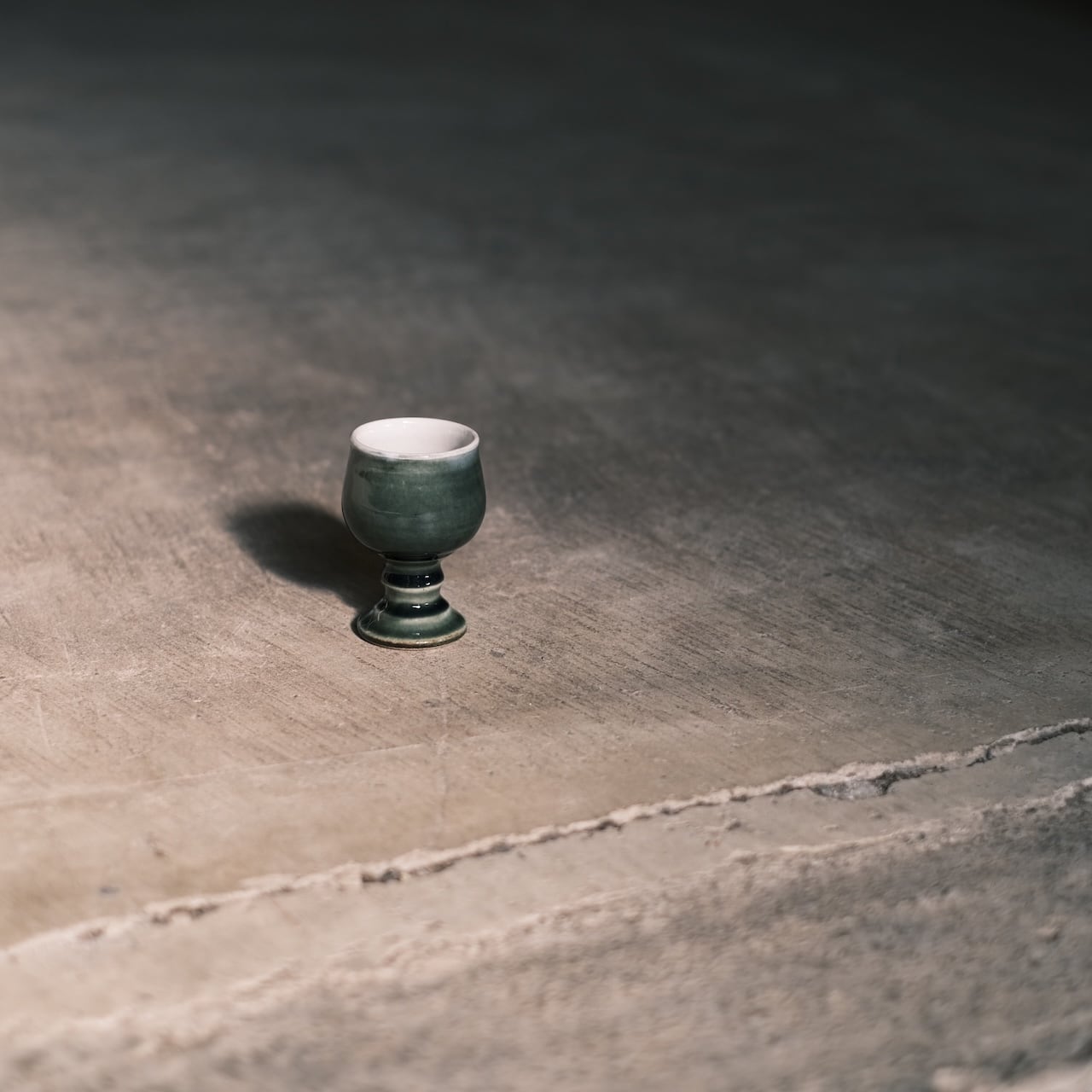 燭台のようなキュッとしたデザインの酒器。ぐい呑みのように使っていただくイメージです。