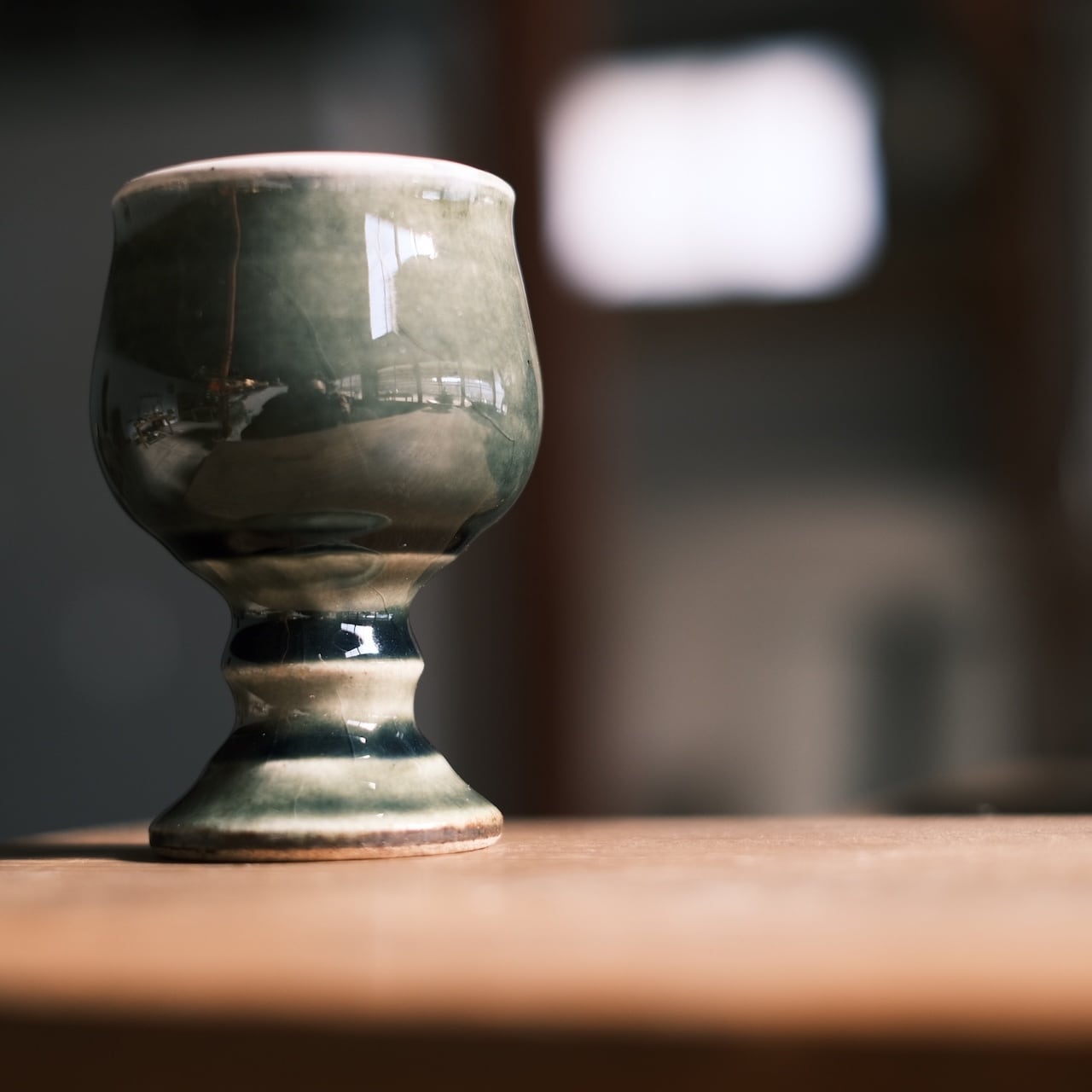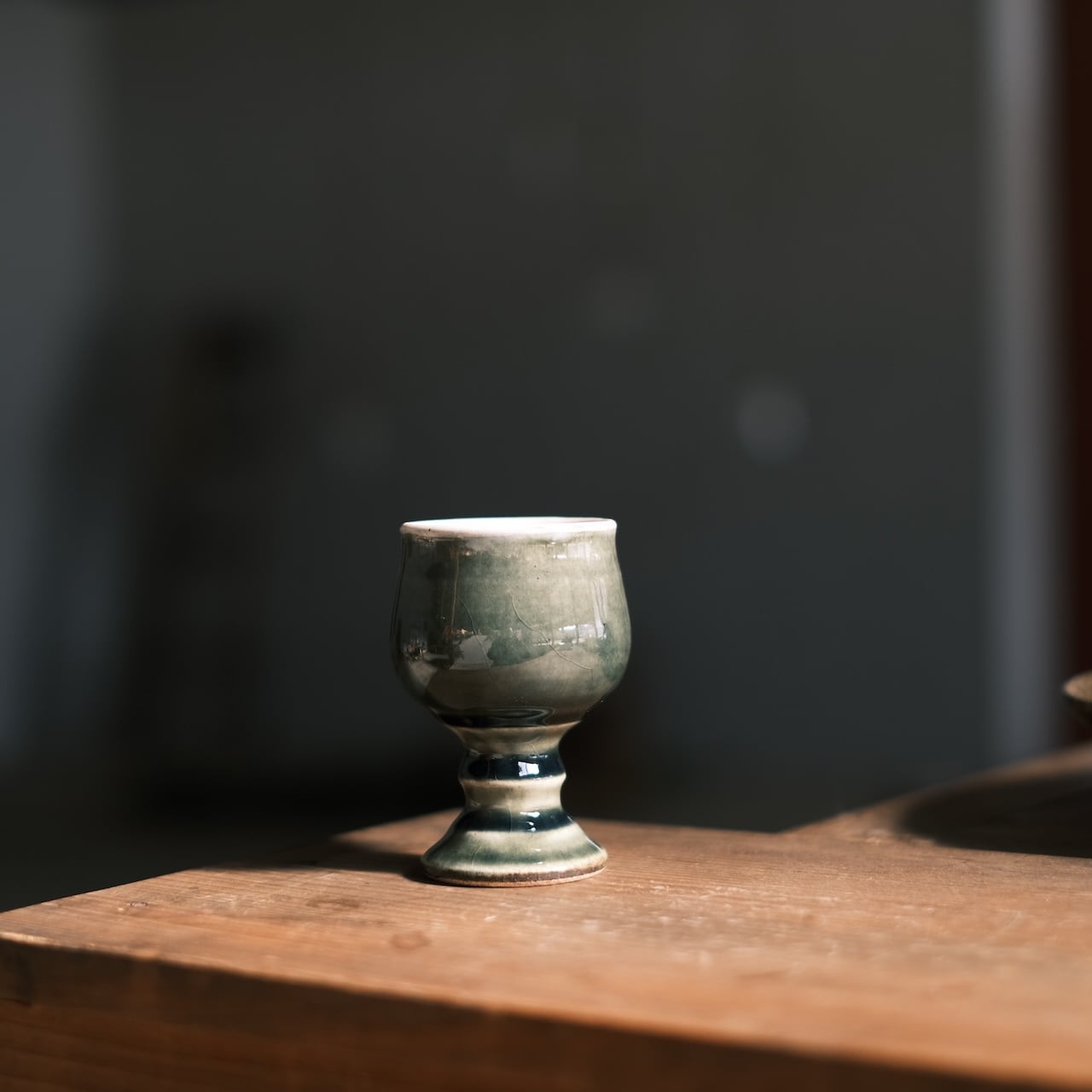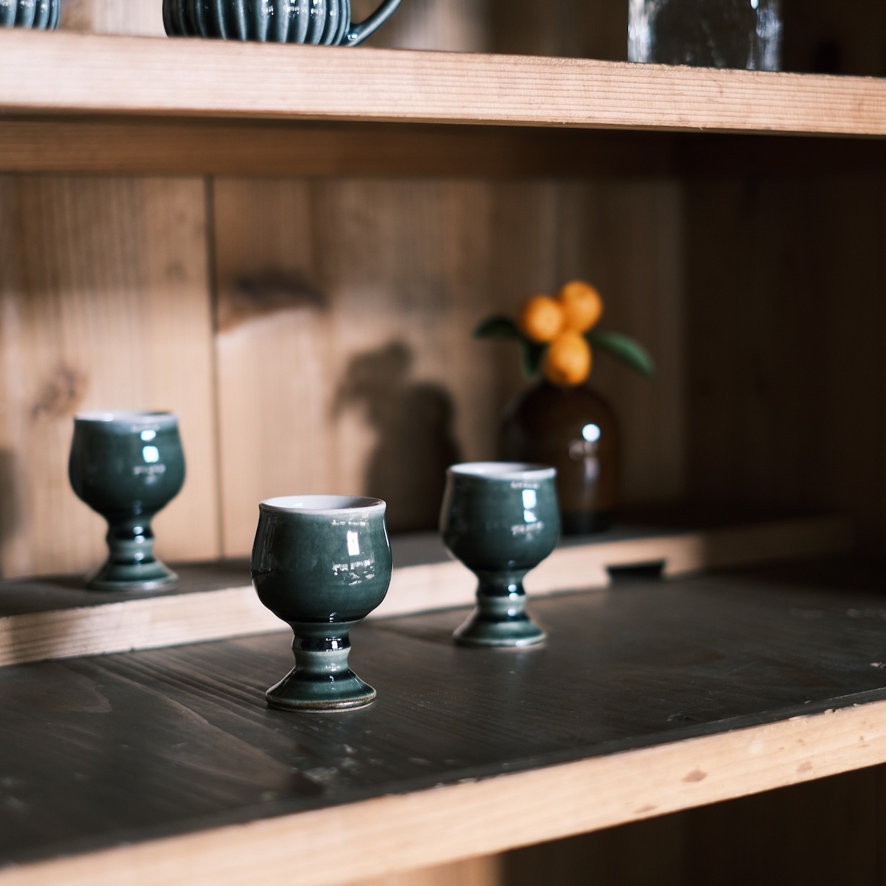 燭台のようなキュッとしたデザインの酒器。ぐい呑みのように使っていただくイメージです。