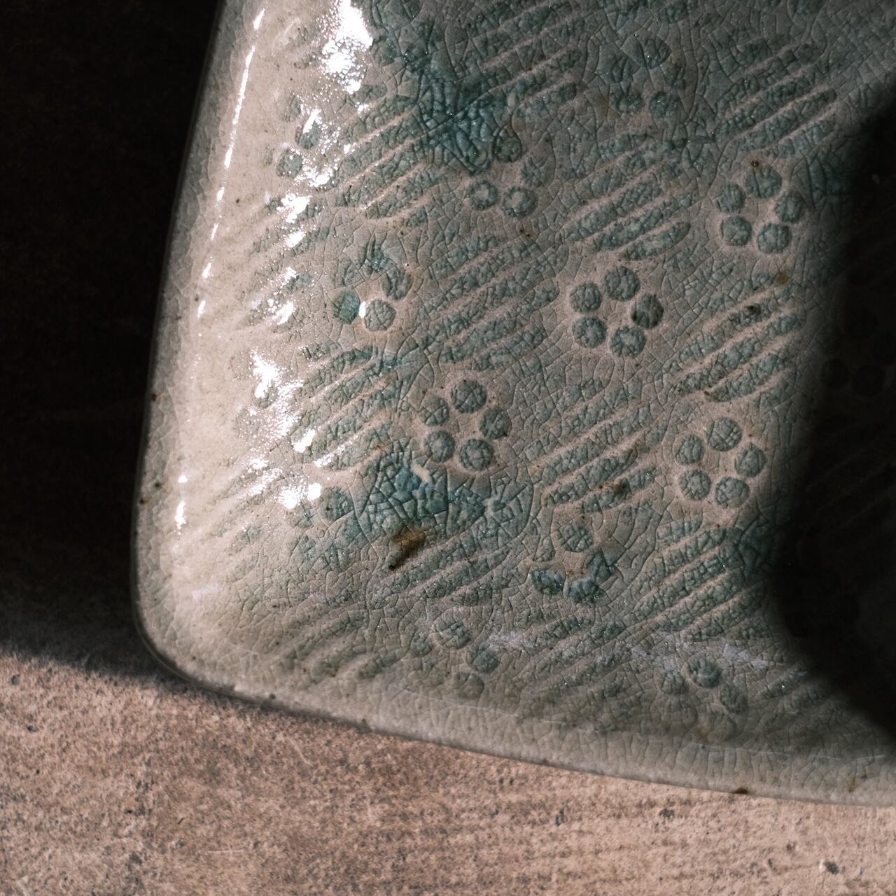 釉薬たっぷりのツヤ感の中にそれぞれ模様が付けてあります。控えめでありながら個性もあり、名脇役になってくれること間違いなし。