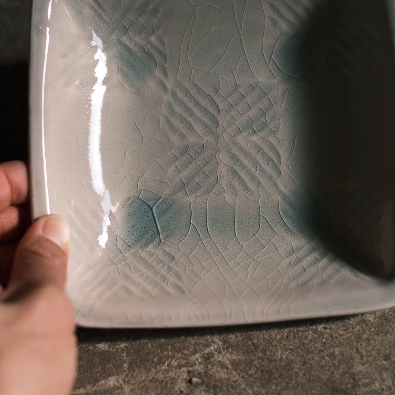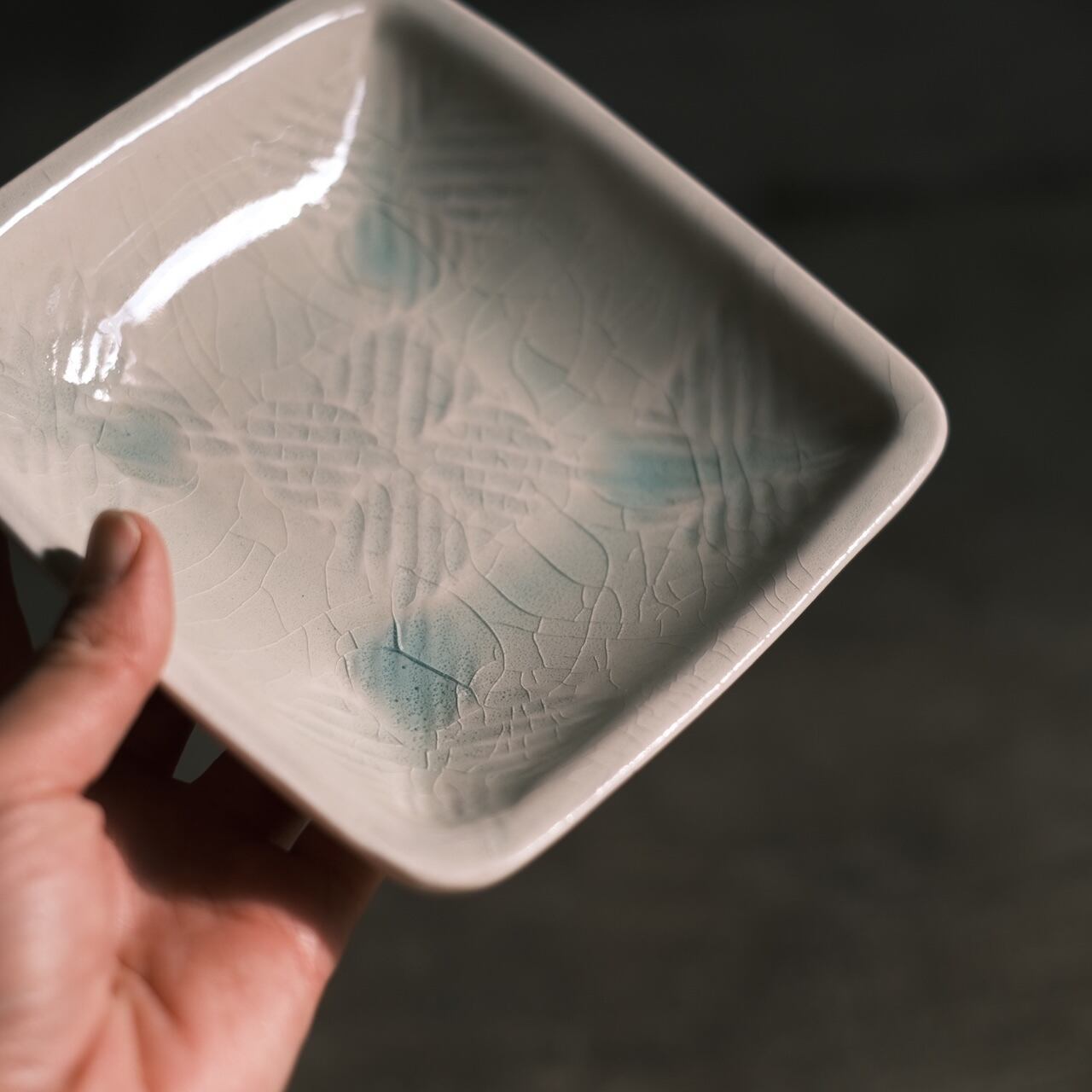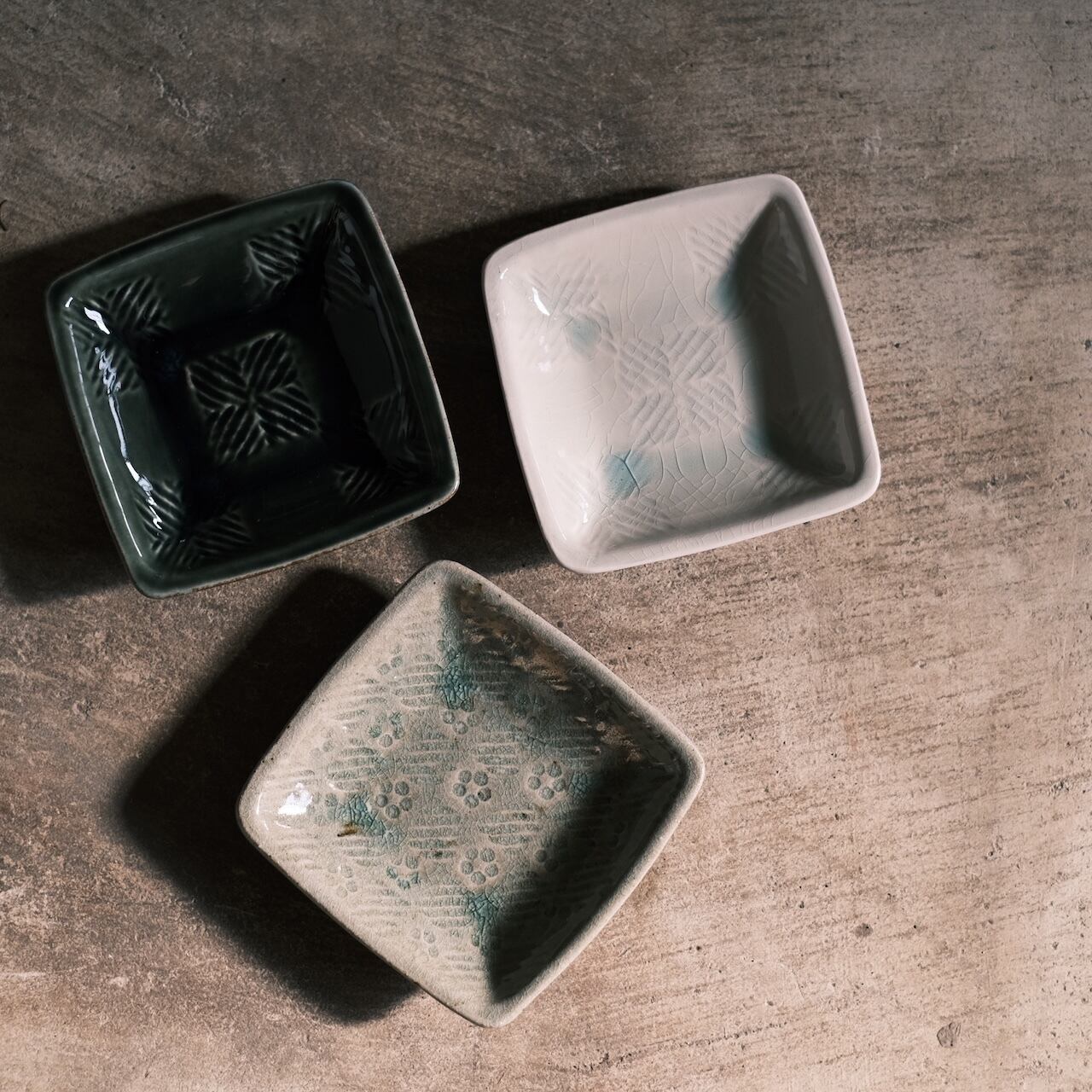 ありそうで実はなかなか無い、正方形の浅い角皿。