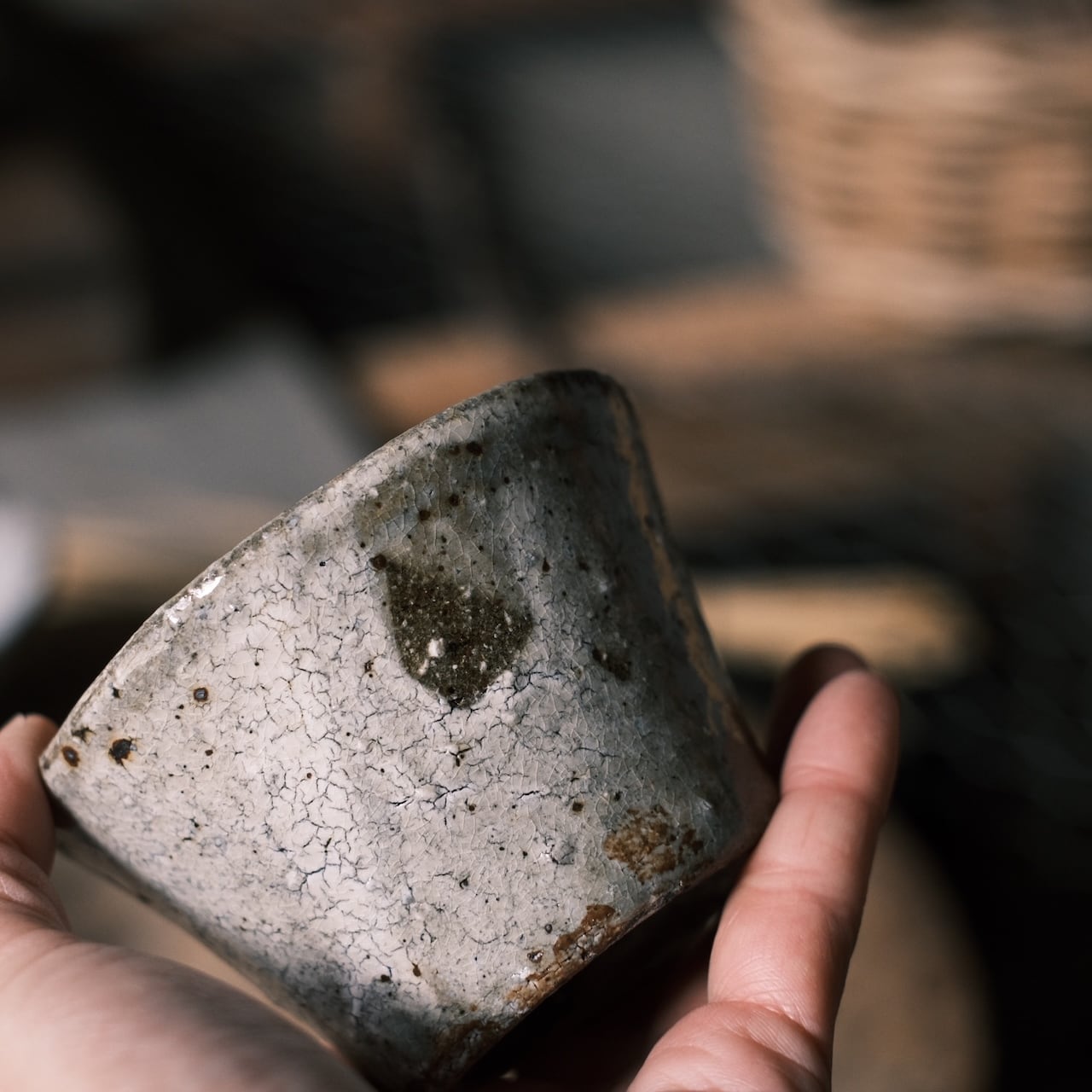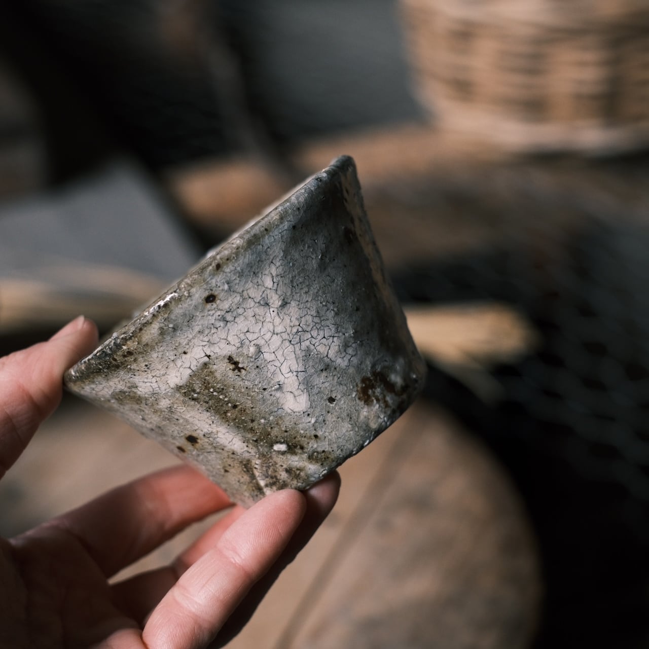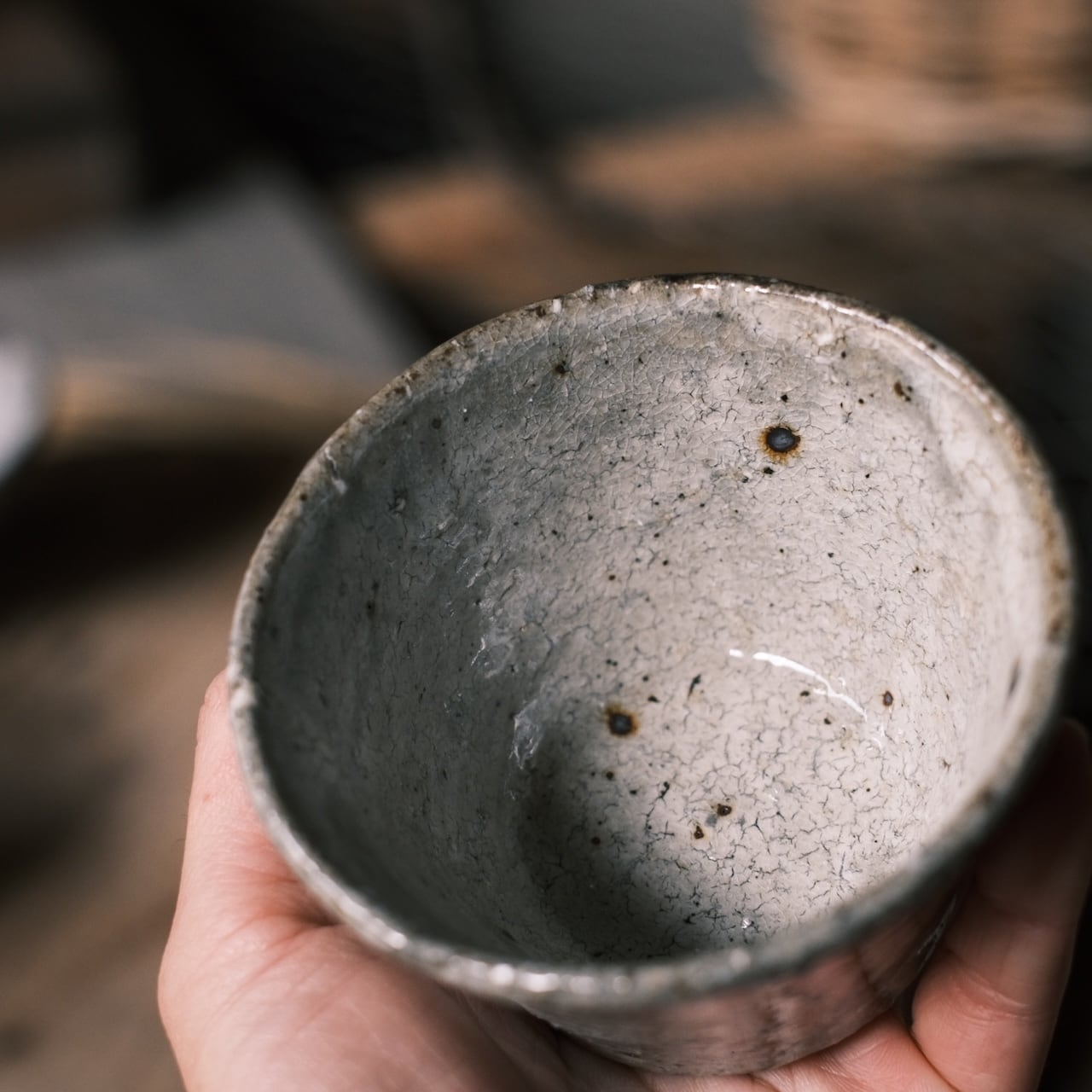 ヒビ粉引のド渋な佇まい。ちょっと男前にコーヒーを飲むには最高です。