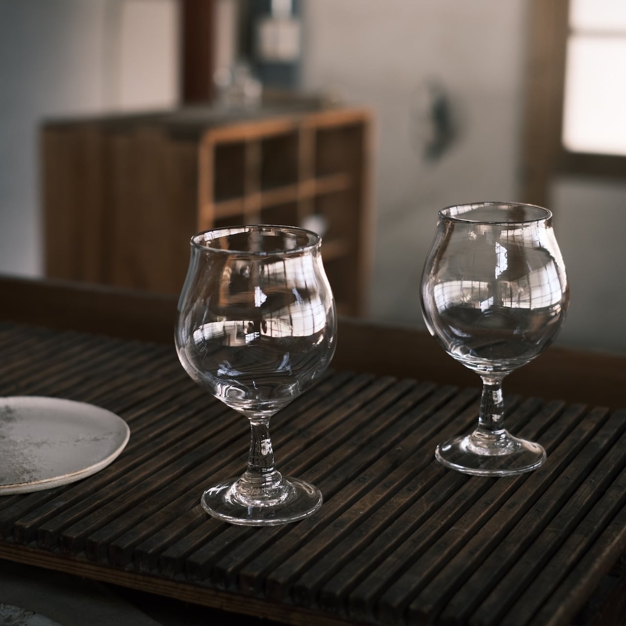 たっぷり入るので、ワインはもちろん、ビールを飲んでも良さそうです。形を見るだけでもゴキゲンになってしまう愛らしさ。乾杯する時の音も美しくて、心地よいです。