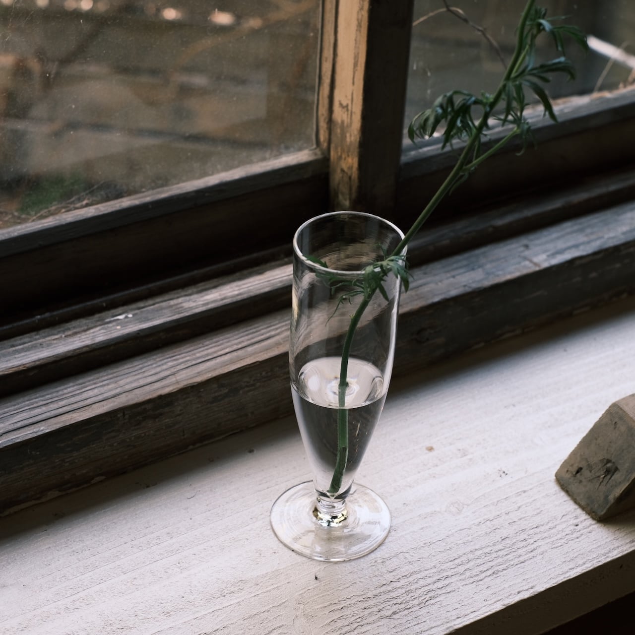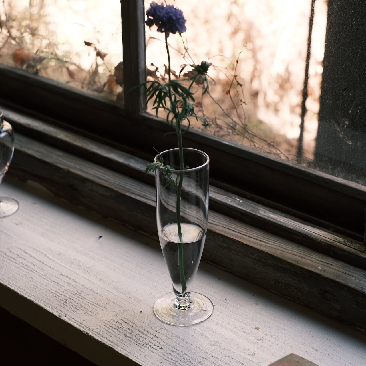 花器のサイズ感なのですが、形的にはグラスに挿しているようで、こなれ感があります。ミントやローズマリーなど、庭のグリーンを二、三本切って生けても素敵。