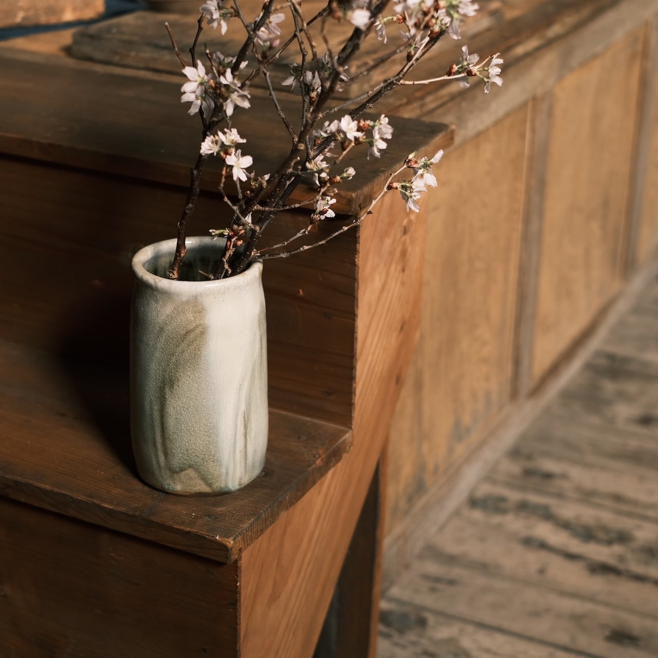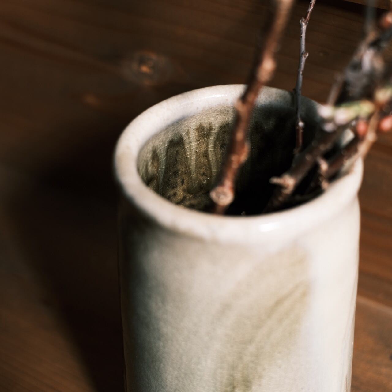 春は梅や桜などの枝物を、夏はグリーン、秋はたわわな実物をと、一年を通してさまざまな楽しみ方を探していける花器だなと。