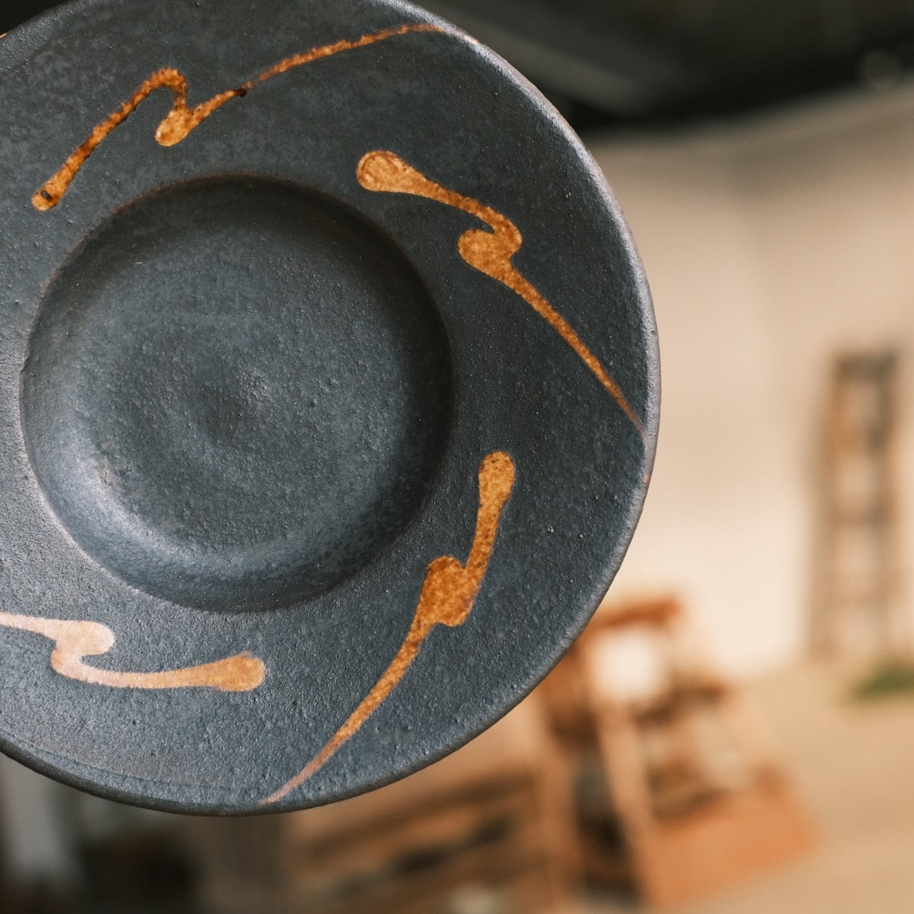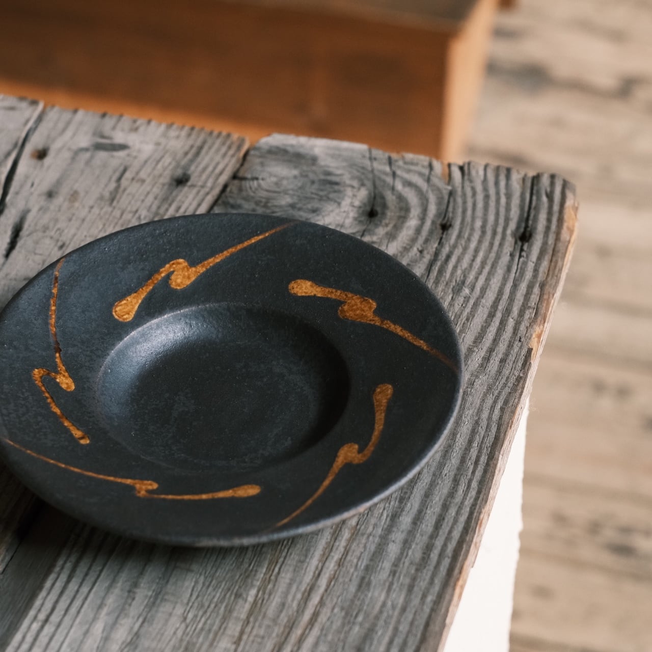 この深い鉄色の質感に、黄金色の線描き。
