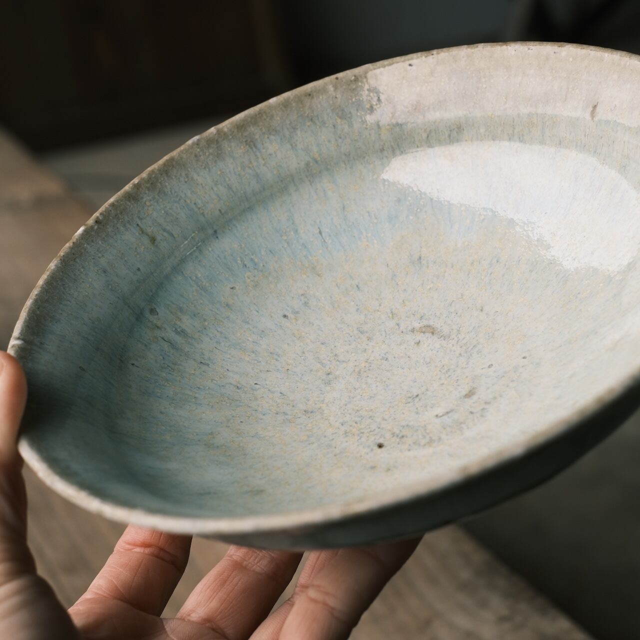 青みのしっかり感じられる藁灰釉で、何も盛っていない段階からもう心惹かれます。