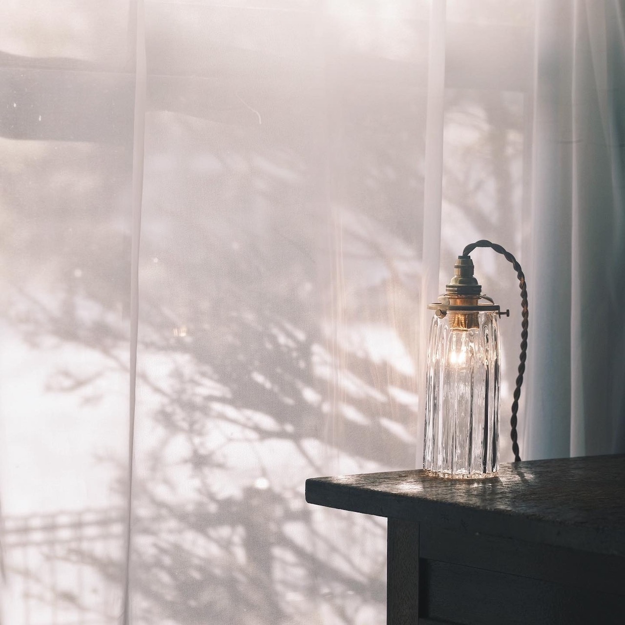 こちらはガラス自体も細身でスラリとしているので、雰囲気抜群。他と似ていない形なのも良いですね。LED電球を入れても綺麗だと思います。