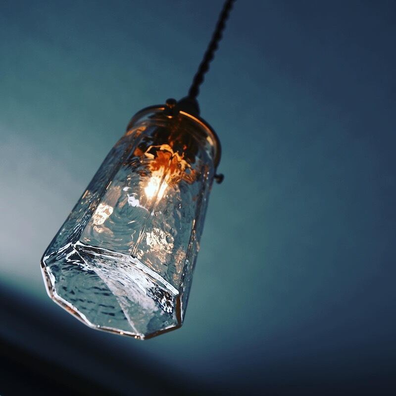 錐台型の照明は、草多さんの吹き型への工夫によって生まれたもの。
