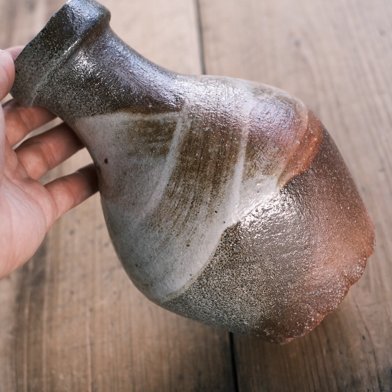 こちらも火の当たり方の影響で、面によって色味が違っています。どの角度を正面にして置こうか、生けるものによって毎回楽しめますね。