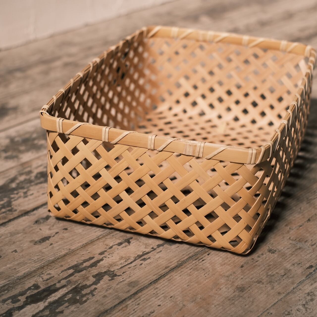 シンプルな菱四つ目の収納かご、こちらは小サイズです。