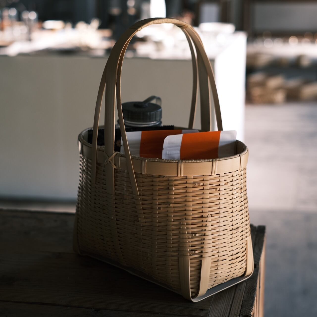 店主も使っていますがびっくりするほど丈夫で、缶ビール何本買ってもビクともしません。カドの補強もしっかり。竹かご編みの強さ、頼もしさを使うたびに感じます。