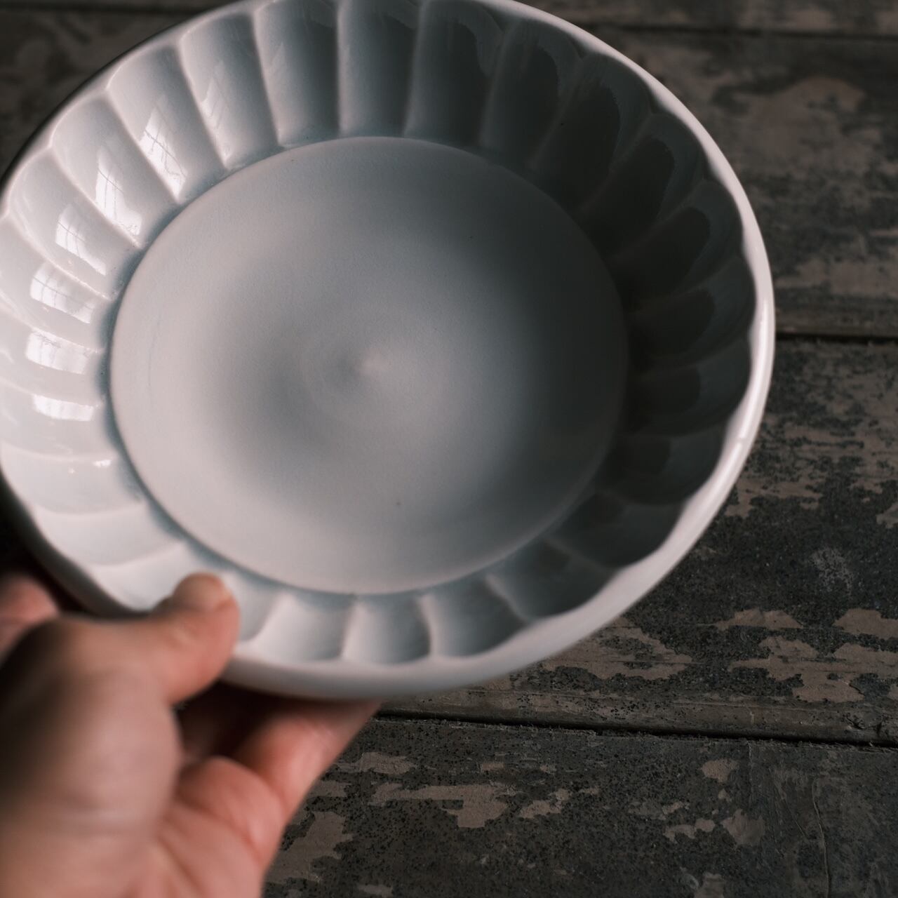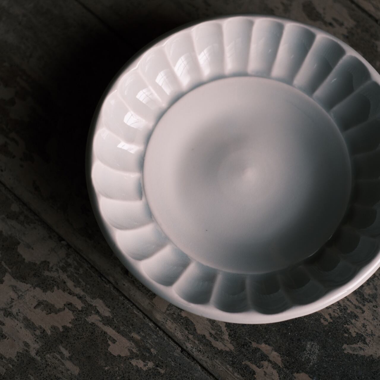 モダンなデザインの光る菊皿。彫り跡が均一すぎず、手の気配が残っていてほっとする。