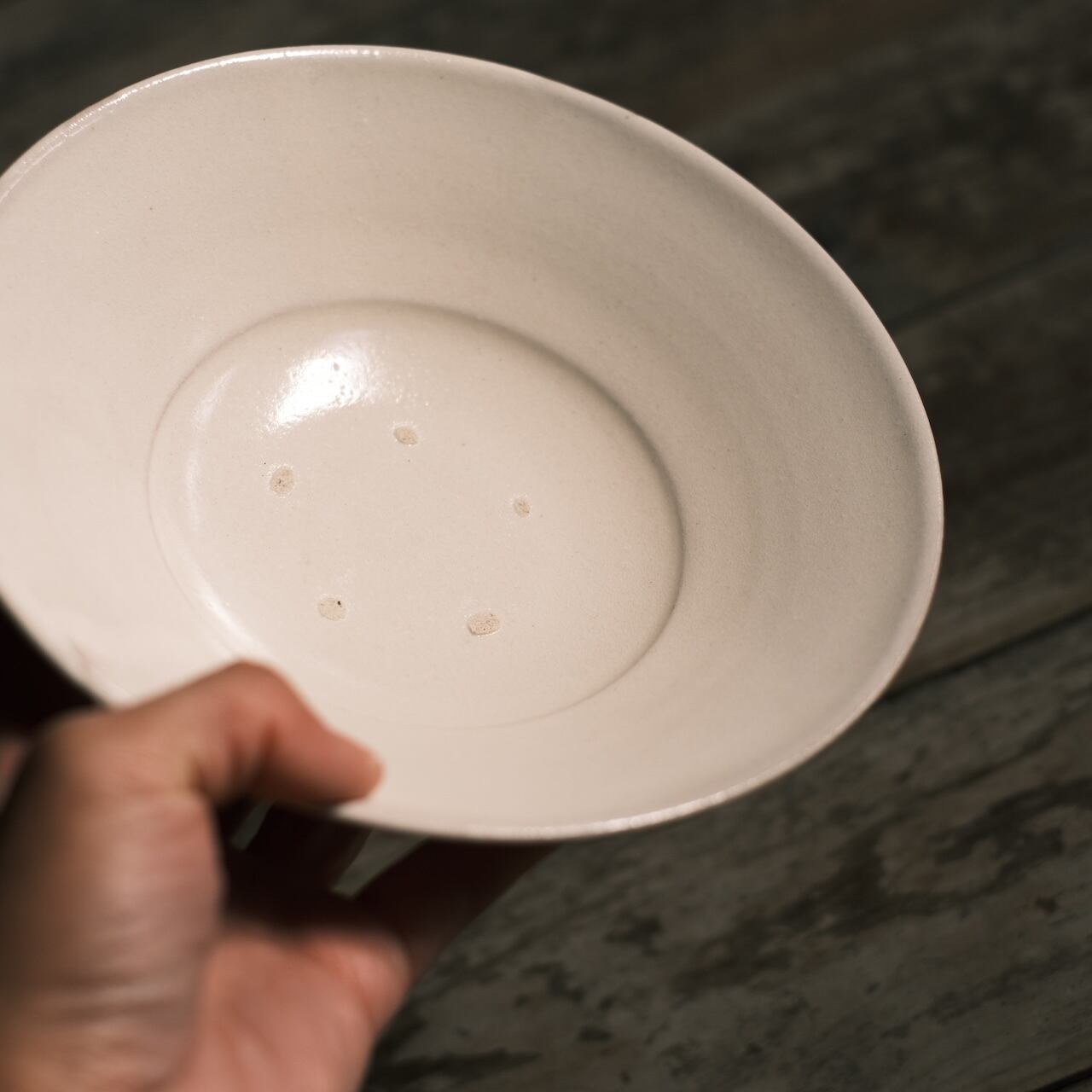 荒賀さん定番のつば皿、6寸は取り鉢サイズです。ワインと洋食の日にはこんな取り鉢がいいなぁと思わせてくれる軽やかさ。